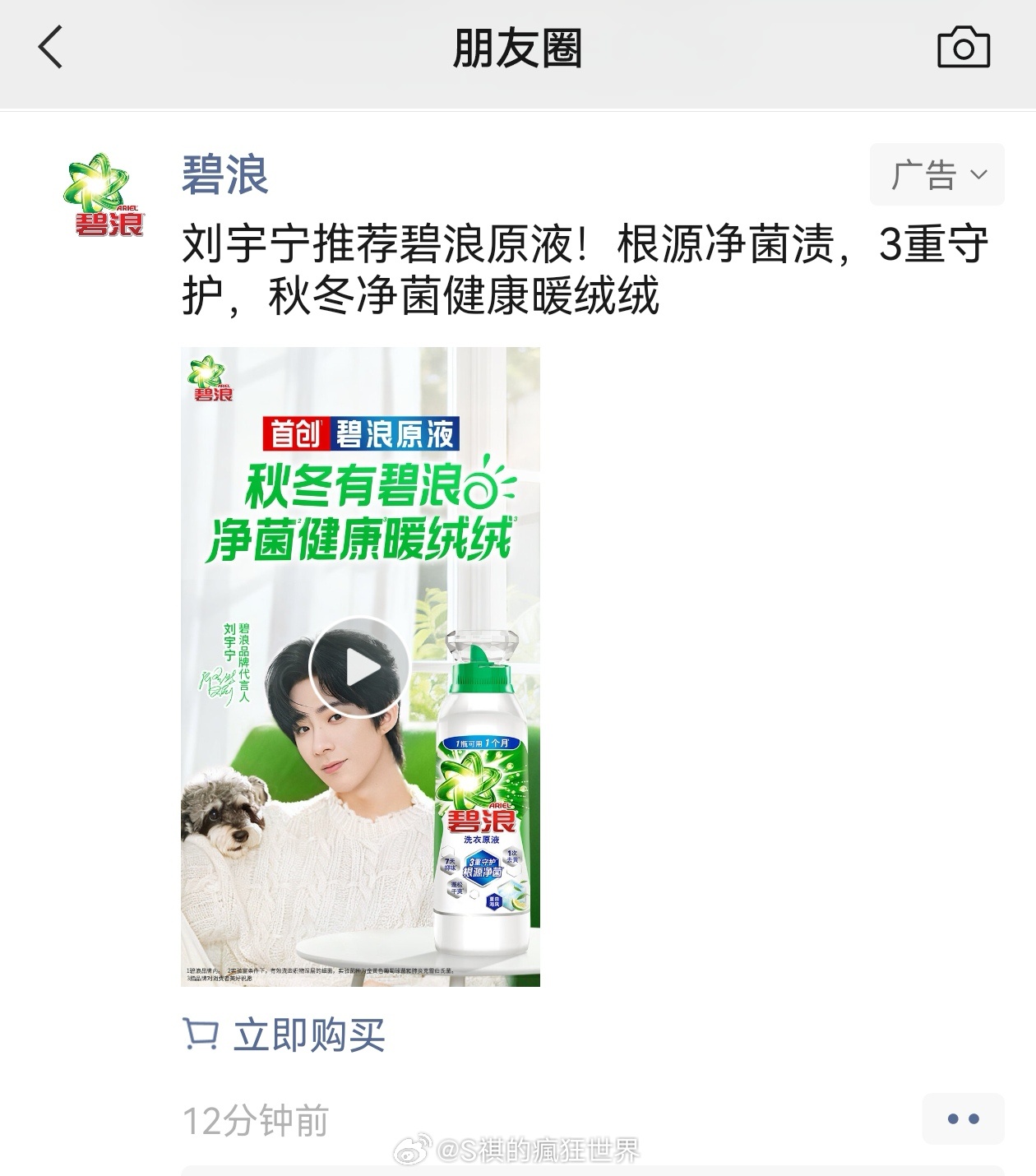 连朋友圈都开始懂我了宁哥守护热爱,碧浪守护你的暖绒时刻。刘宇宁碧浪品牌代言人|