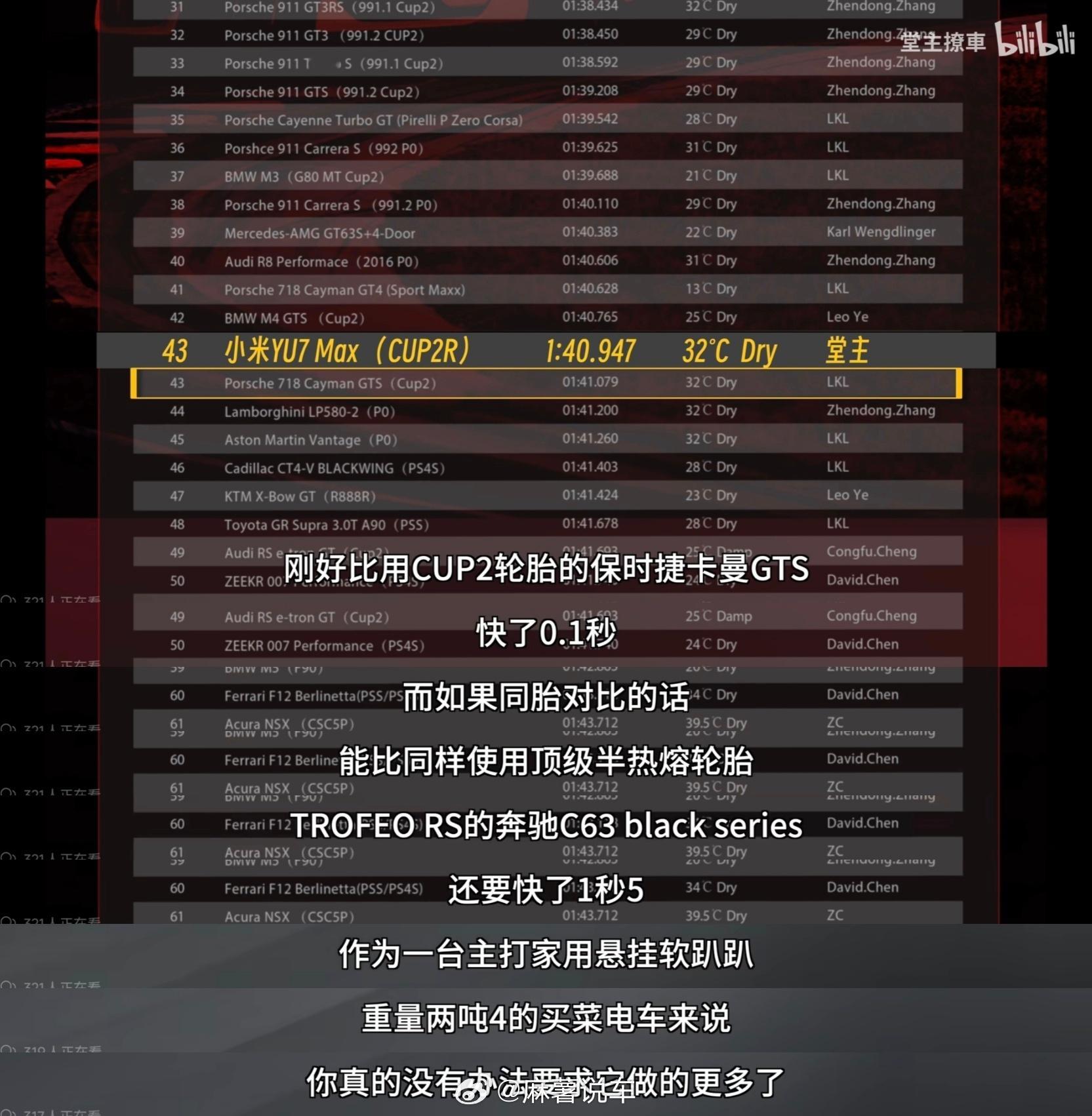 谁能想到,一台家用SUV能在浙赛搅起这么大动静?堂主驾小米YU7刷出1:40.947的成绩,直接冲进总榜第43,比官方快2秒多就算了,还比保时捷卡曼GTS快0.1秒、比奔驰AMG C63 Black Series快1.5秒,“百万以内最速量产SUV”的称号彻底坐实。更狠的是,它全程刹车无衰减、电池不过热、动力不限速,能反复豁的硬实力,全靠纽北背书的机械底子。要知道,小米在设计YU7时就没妥协性能,如今赛道成绩不仅打脸“中国人只爱中庸车”的偏见,更让大家看清家用SUV也能有硬核操控,而赛道上的扎实表现,反过来也让日常驾驶更得心应手。