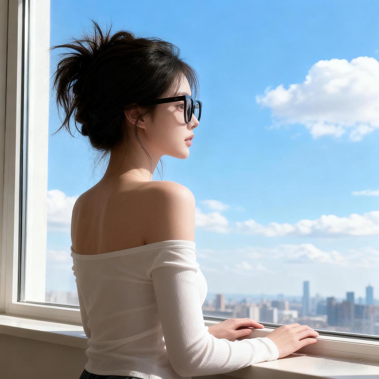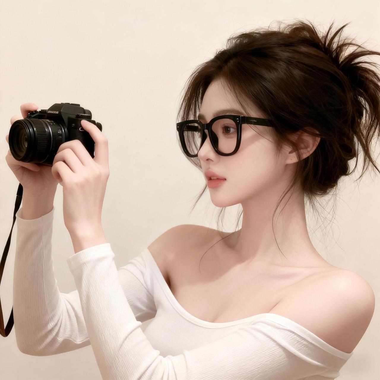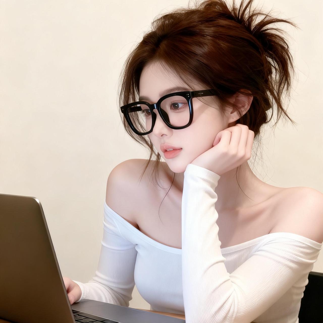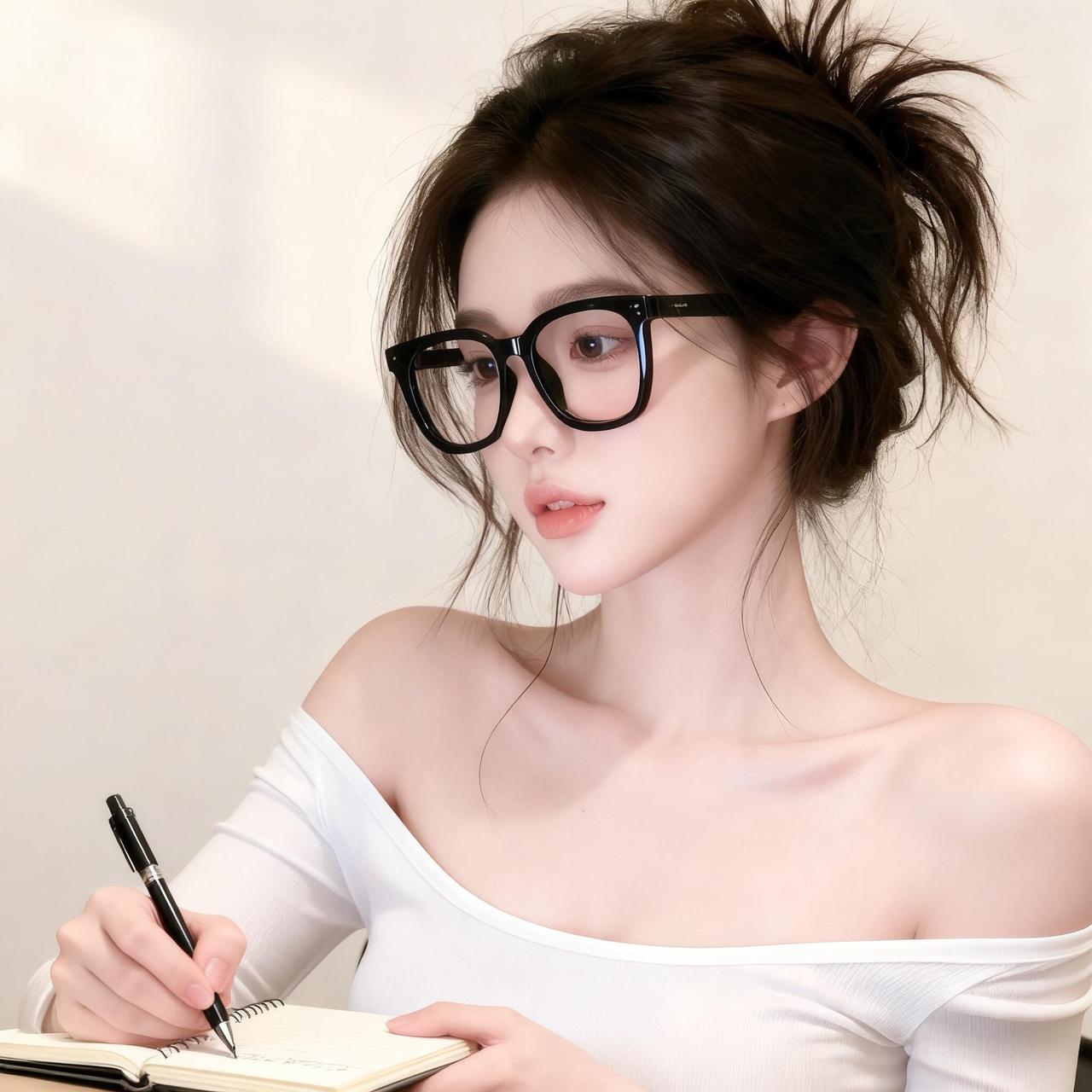 黑框眼镜下的思绪飞扬。眼镜系美女 沉思静谧氛围 斯文眼镜妹 甜妹 清纯可爱 甜甜的