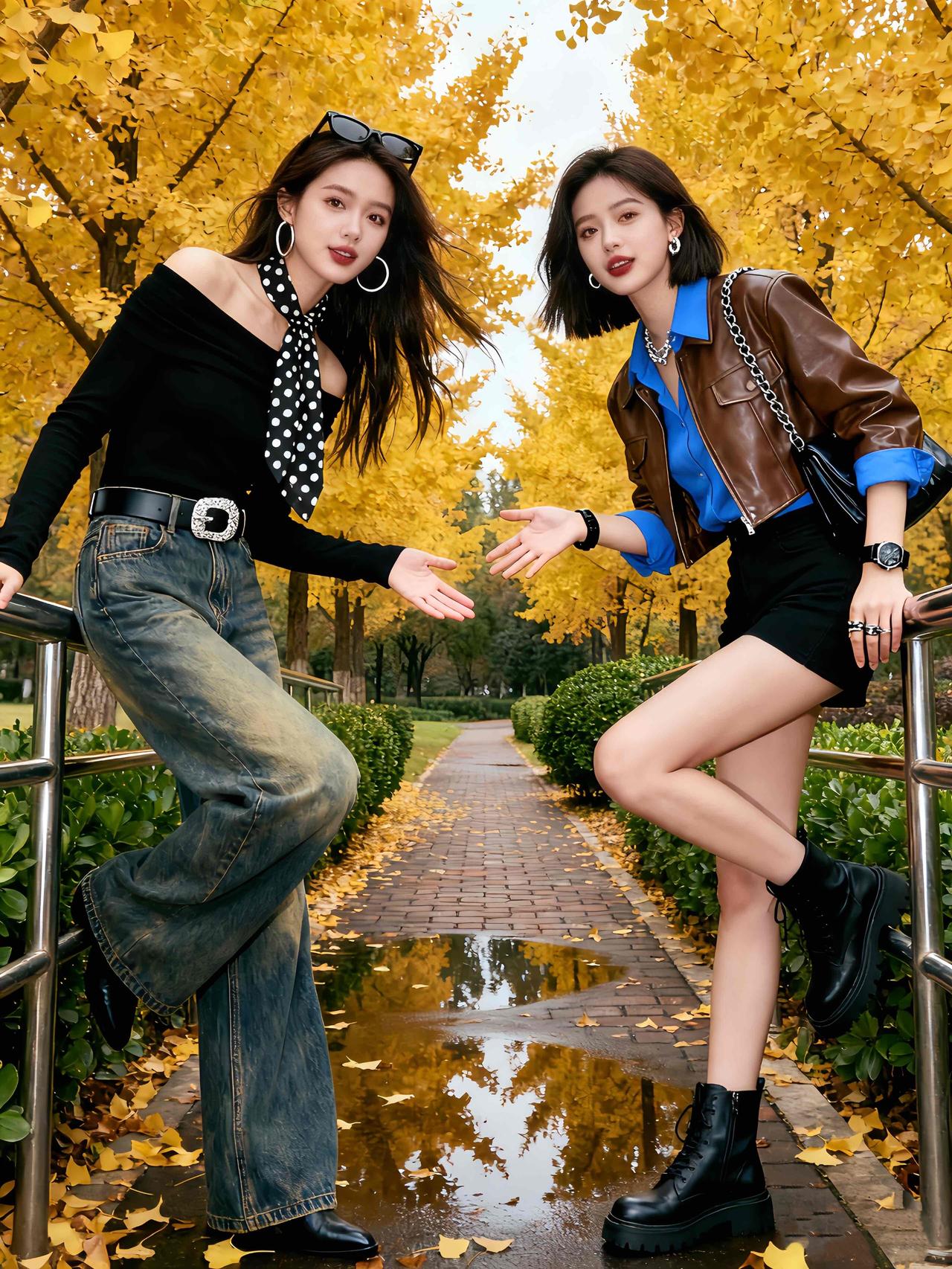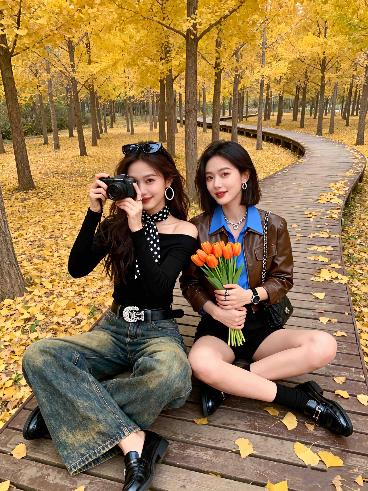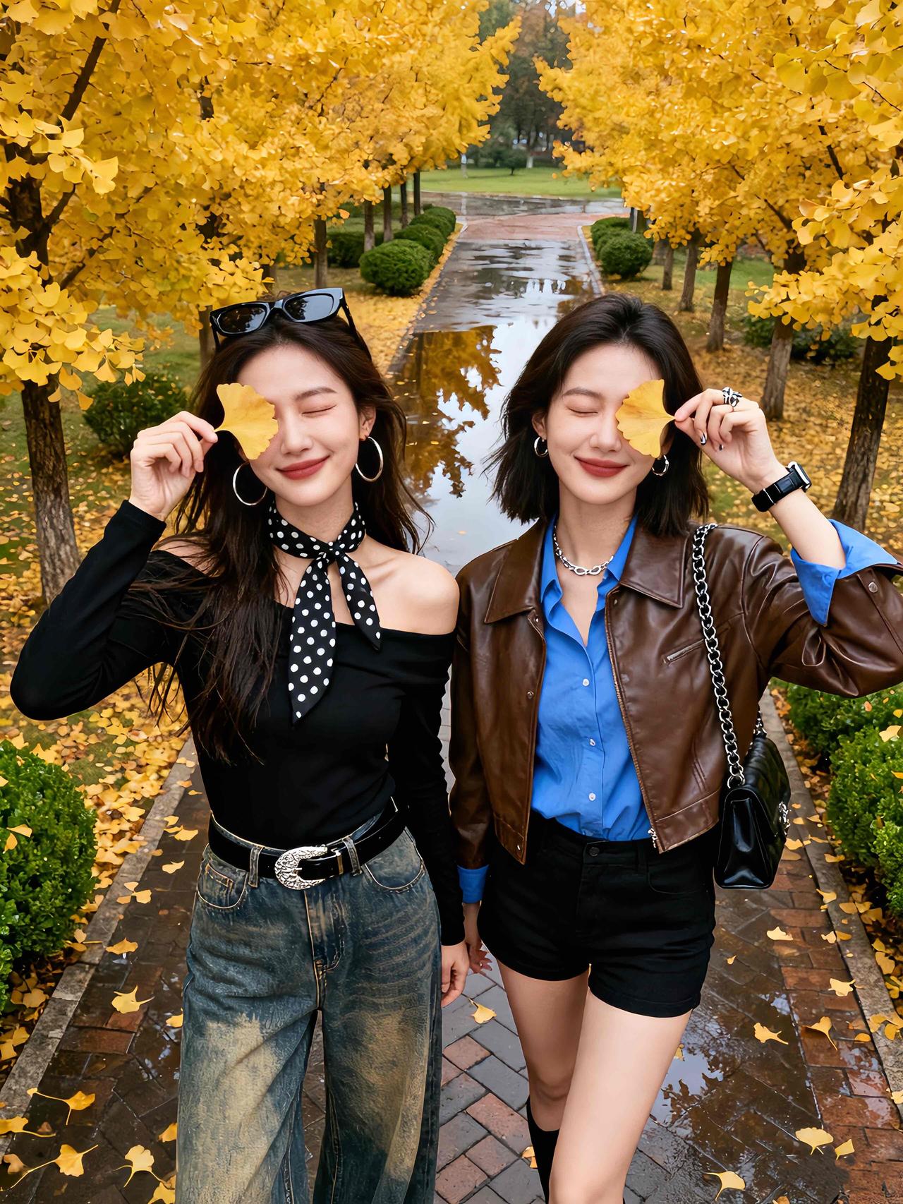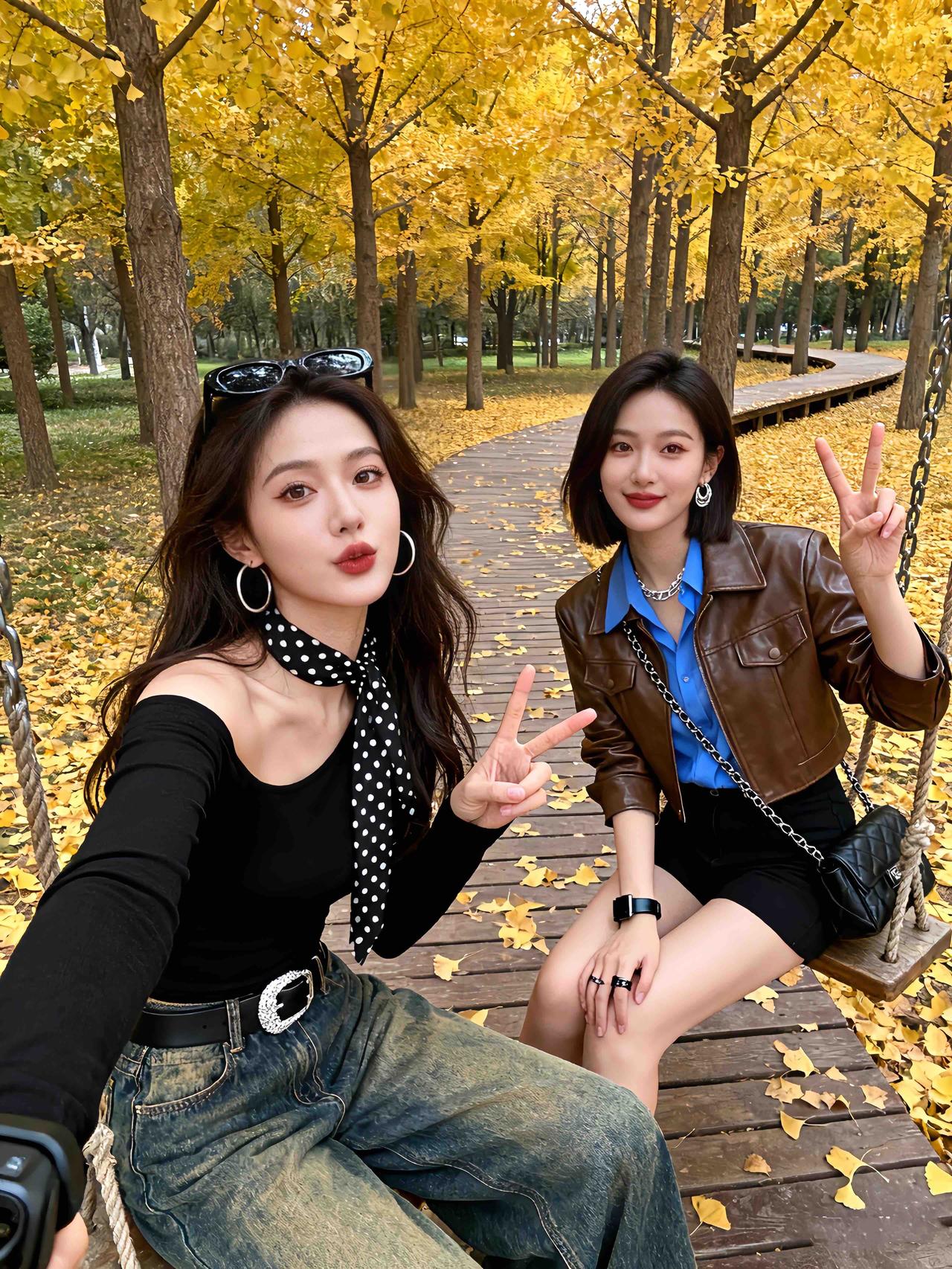让我看看是谁和闺蜜出门还不会摆pose的两姐妹自拍 秋日穿搭 落叶怎么拍 氛围感 秋天该有的样子 高雅气质美女