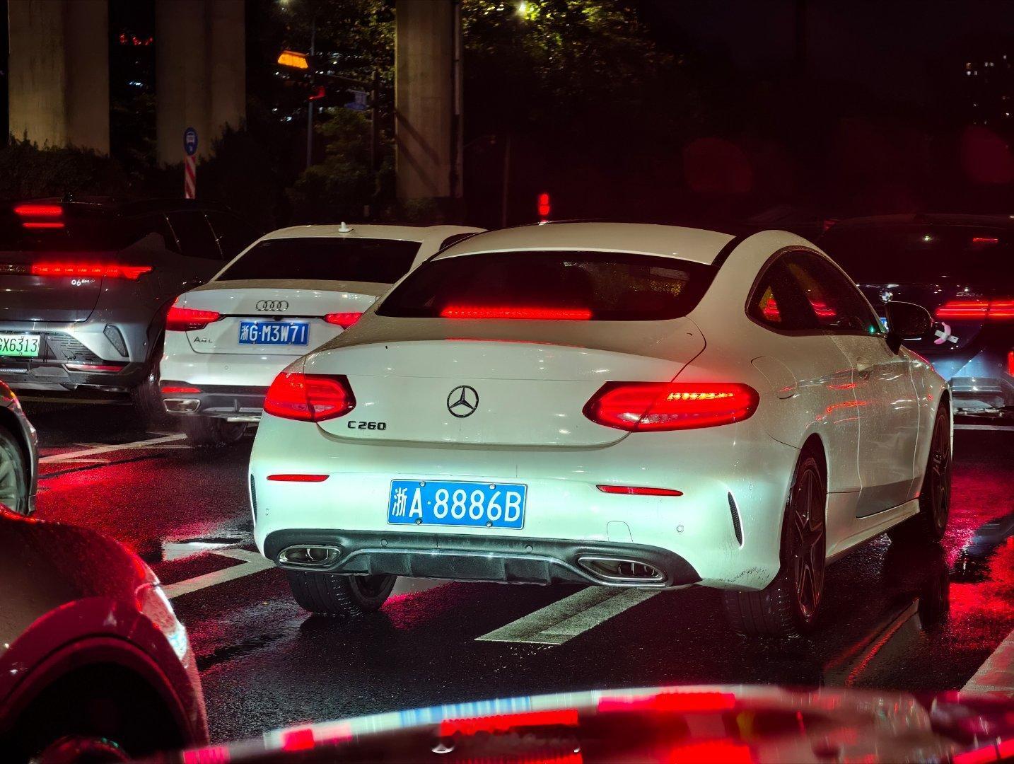 路口等红绿灯,拍到俩靓号车,一个是绿牌的蔚来es6 ,一个是蓝牌的奔驰C260 轿跑,你喜欢你哪个车牌号?[开学季]