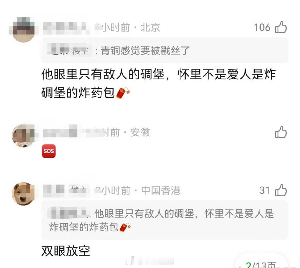 戏混子忽悠內娱,昨天看万箭穿心那,面无表情,都被扎透了居然没什么痛感…与君歌的时候也是这种眼睛斜着向下看人,加上他的妆造和嘴。那时候才被说公公的~会用眼睛演爱人的男演员现在屈指可数[无聊]哥哥戏里戏外都得像和尚一样 无欲无求粉丝们就开心了。我记得这剧在拍的时候他家粉丝不是因为海报闹过一次吗?说是大男主不准带女主上海报