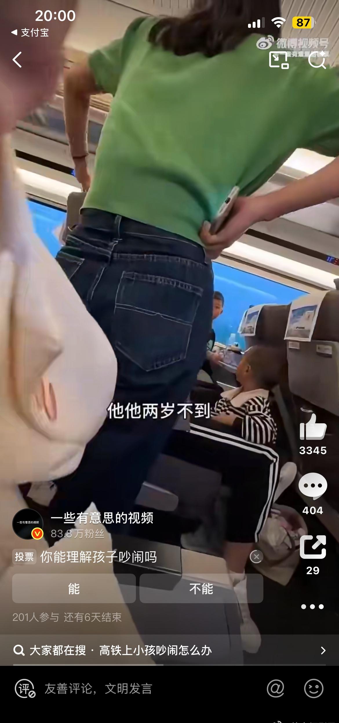 小孩高铁生病哭闹乘客生气质问上周出去玩坐高铁,碰到一群小朋友出行,没觉得吵…回来的高铁上,后座的人一直在大声讲电话,忍无可忍发飙了…