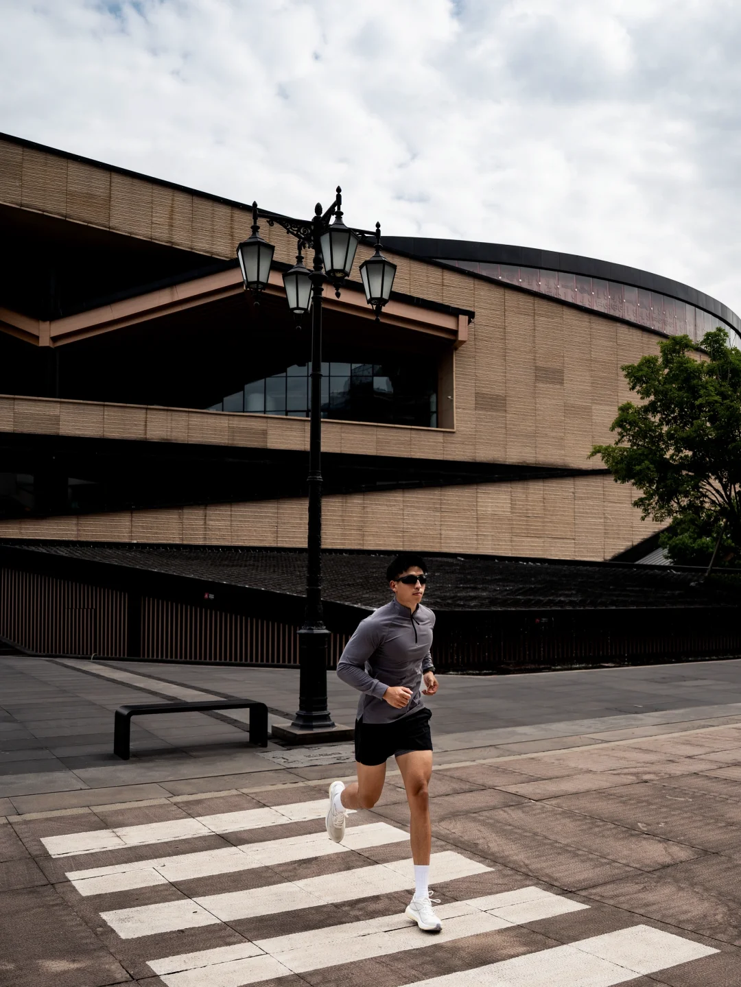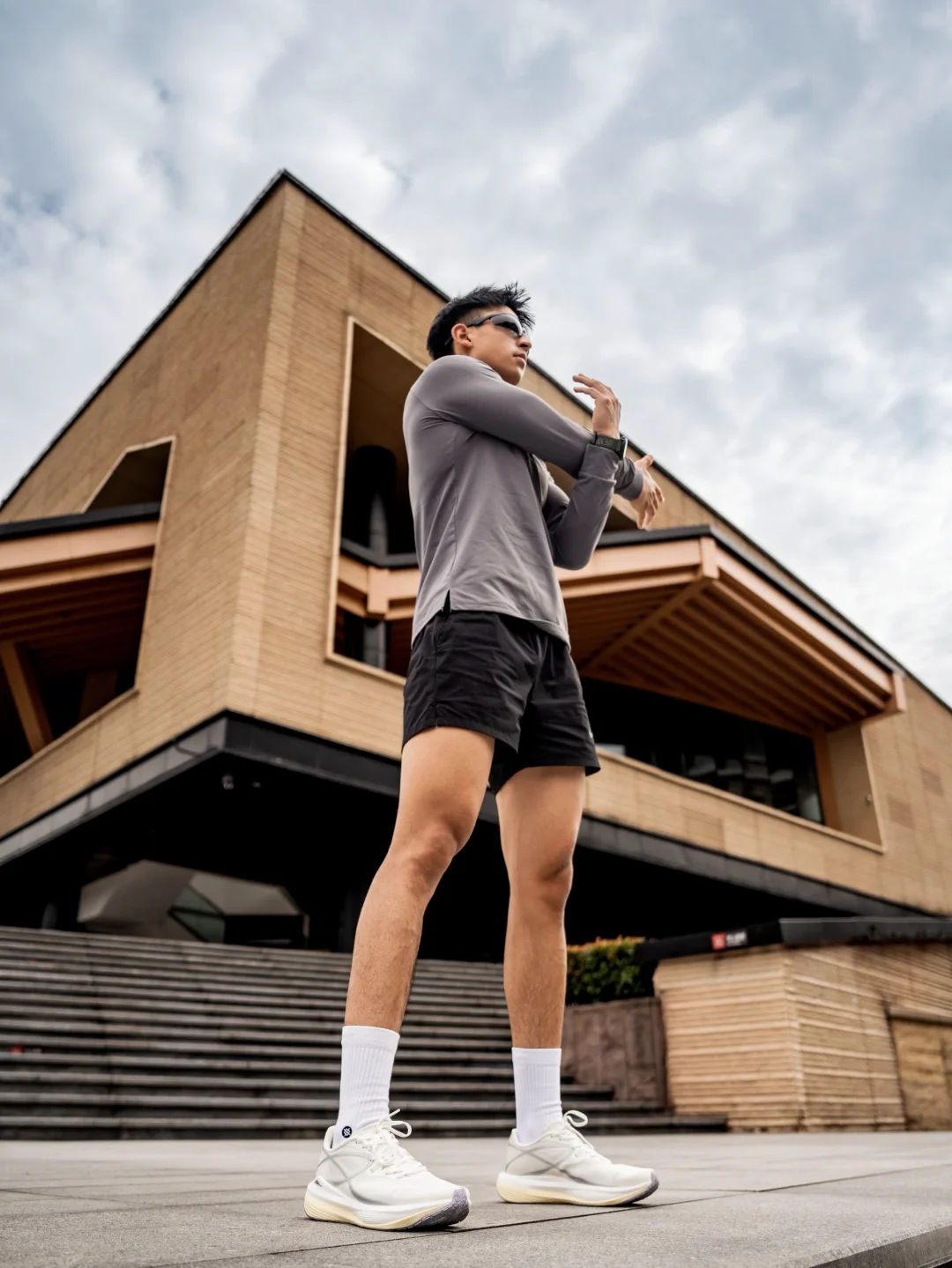 带上我的安踏冠军轻风跑鞋,穿梭在1949大剧院的跑道上。