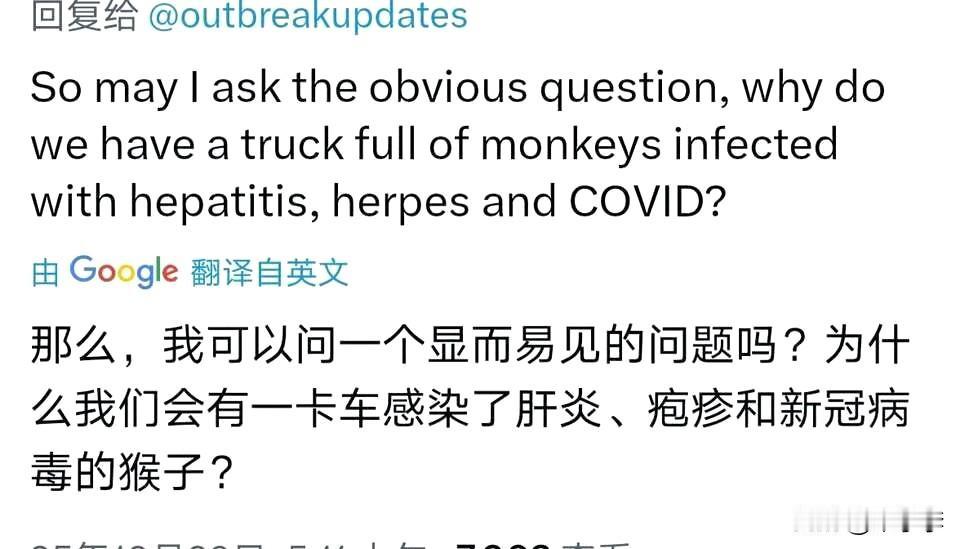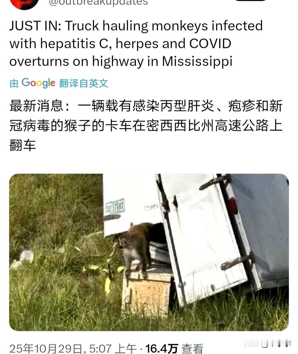 有猴子,正常,有染病的实验猴子,也正常。但是染病的猴子离开了实验室,用卡车转运,车子还翻了,猴子居然能跑出来,这就有点不正常了[抠鼻]而且这种事情不是一次两次了,而是很多次了,之前有感染猴子也是这样跑了,过几个月后美国就开始有猴痘新闻了美国猴痘 美国传染病协会是什么性质的? 美国猴子 猴痘病毒感染者 美国猴