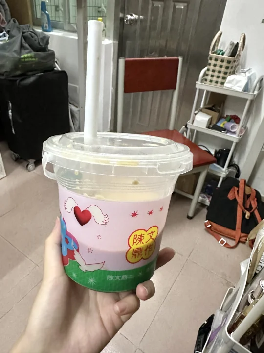 在开学期间16r get到了陈文鼎的开学季活动套餐:一升装大满贯吨吨桶和拳击笔周边,真的太适合大学生开学哄自己好好学习了!!吨吨桶里料特别足!一升的大容量奶茶中还有椰果、黑糖珍珠、芒果布丁、红豆四样小料,一口下去超满足!!