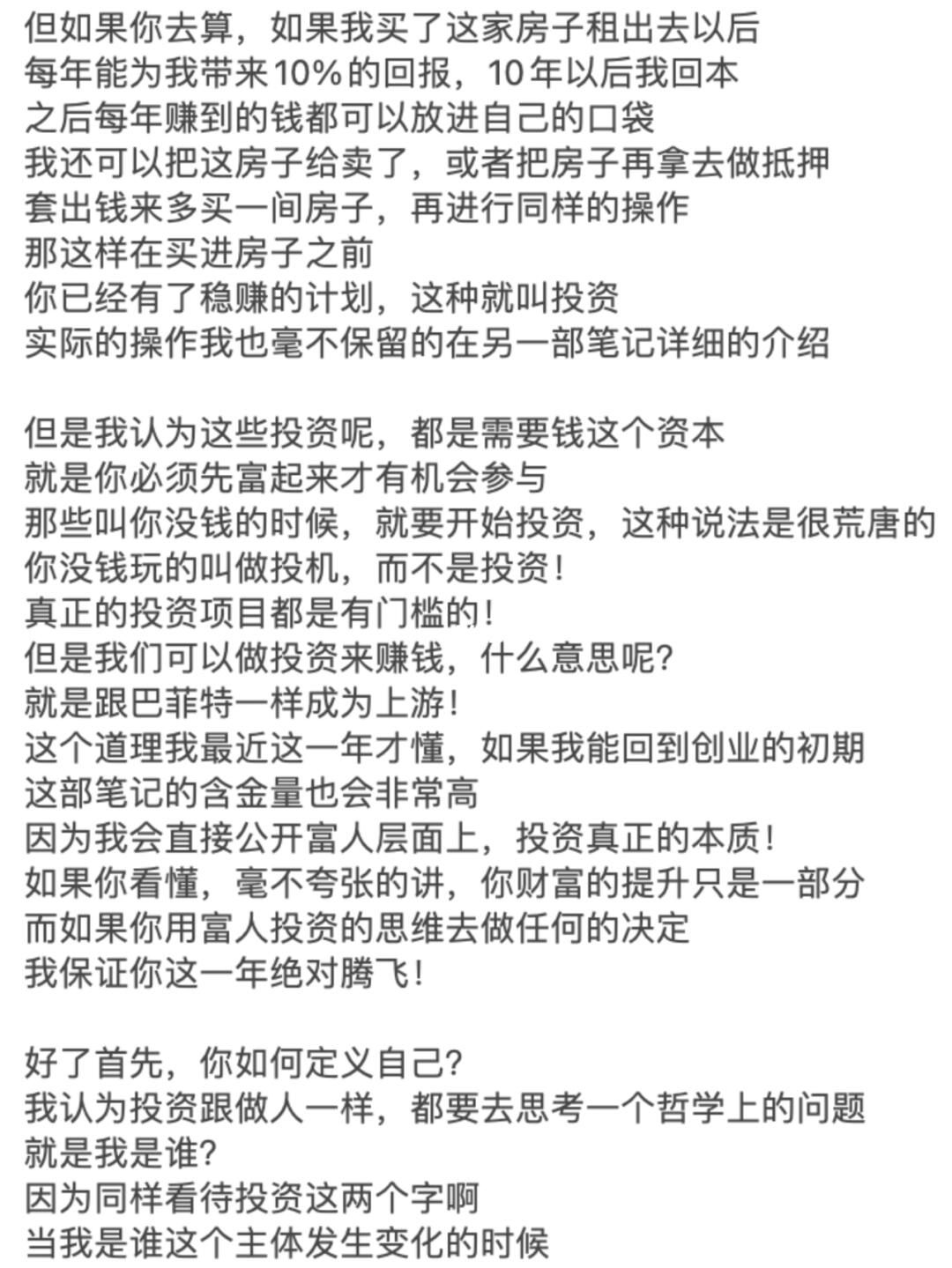 因为我会直接公开富人层面上,投资真正的本质!