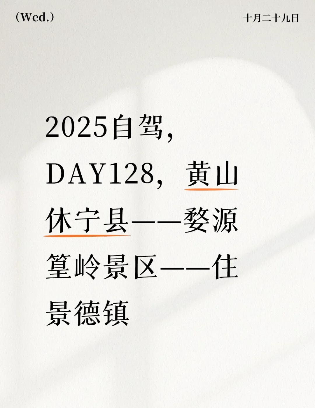 婺源篁岭一言难尽,景德镇交通乱得一匹! DAY[一][二][七]:黄山休宁县——婺源篁岭景区——住景德镇 嘿,哈尼, 你就是我的小炒肉, 又热又辣还吃不够。 行程:今日开车180公里,累计里程4109公里 1️⃣在酒店休息到12点退房,去休宁人民的厨房老电影院饺馆[七][七][八],快把自己吃哭😭了,又实惠又好吃。 2️⃣吃完导航婺源篁岭,全程走下路,几乎全是盘山路,弯道又多又曲,车技不好的慎开,我差点追尾一个逆行胡kb开的。 3️⃣14点15到达篁岭停车场,车真够多的,当时心就凉了一半,这村儿要危。 4️⃣买了上下索道,景区高处的观景台和下方的古树花溪都看了看,16点半到停车场导航景德镇的酒店。 5️⃣景德镇的交通真够一梦的,进城了8公里开了40分钟,到处都是乱窜的电驴🫏,不看灯的、逆行的、强插的,交通差的一匹👎。18点半到酒店结束了不那么美滋滋的一天! ❌婺源篁岭(2小时):体验很差,纯商业化景区,景区里应该没有住民了,估计除了古树其它全是新的。号称篁岭晒秋,其实晒的都是换上村姑衣服、带着全妆排队打卡拍照假道具的小仙女🧚♀️,这么一比我觉得宏村和西递真香。也许住一晚早上的时候能稍好点。 花费💲:今日花费615.72元,累计花费15087.07元 1️⃣🏨:184元。景德镇汉庭3.5,停车也特么费劲,以后银发和灵就工越来越多,工作日旅游也越来越难受。 2️⃣🍽️:56.9元。中午吃了47,差不多两个人的量,又买了个饮料。 3️⃣🚗:加油⛽️200元,ETC35.82元。 4️⃣🎫:婺源篁岭景区门票➕上下索道139元。 明天逛景德镇,继续住。 自驾 自由行 安徽旅游 江西旅游 婺源 婺源篁岭 景德镇 景德镇旅行 景德镇攻略