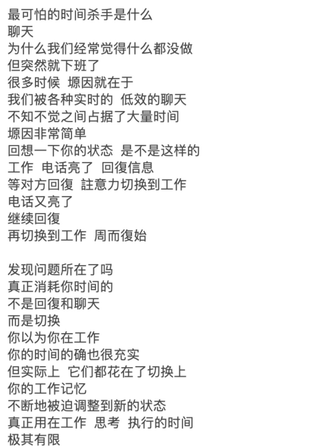 等对方回復 註意力切换到工作