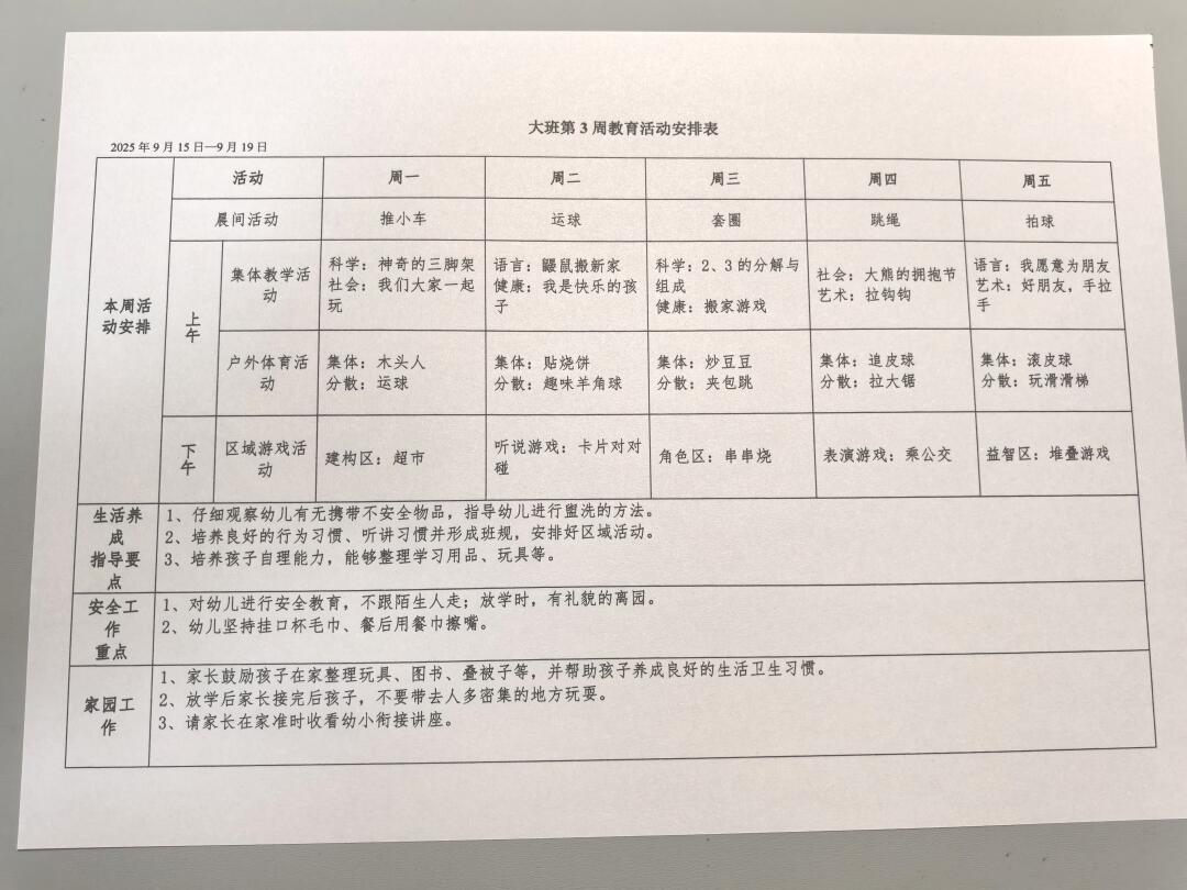 幼儿园大班周计划(2—3周)!