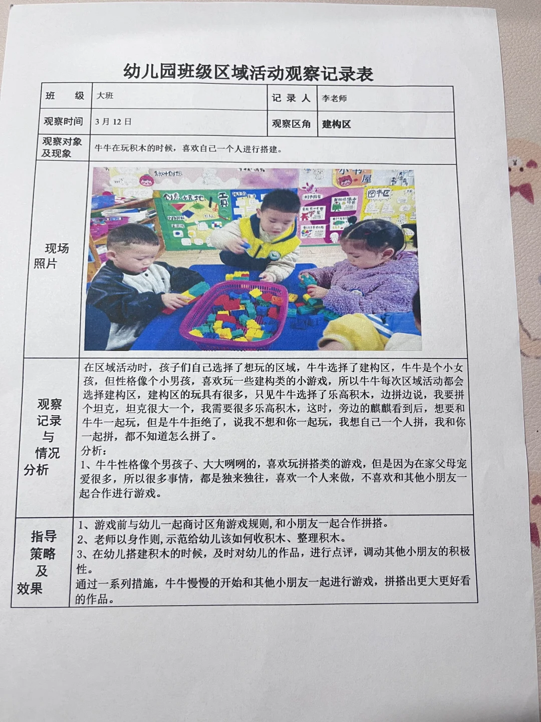 幼师 幼儿园 幼儿园老师 幼教分享 幼师必备 区域观察记录 观察记录表 自主游戏观察