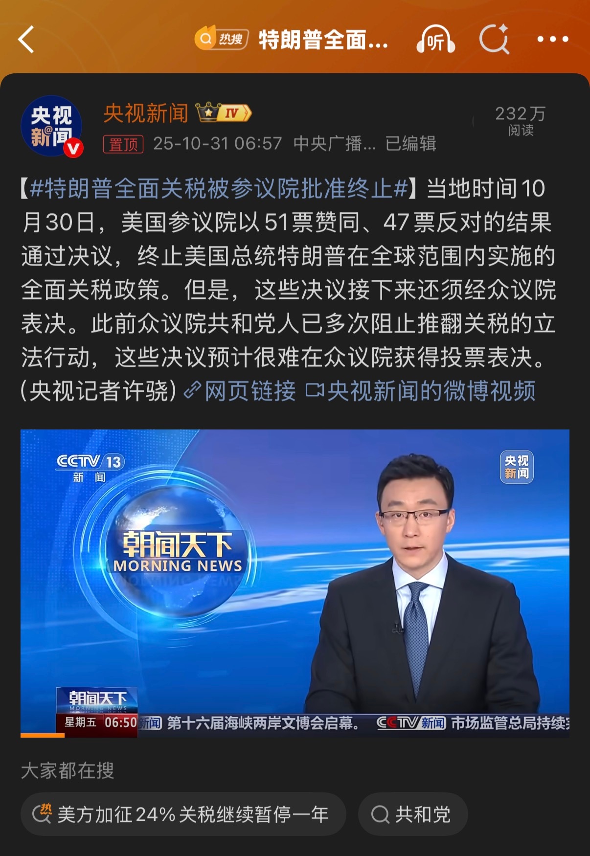 特朗普全面关税被参议院批准终止热点现场海外新鲜事