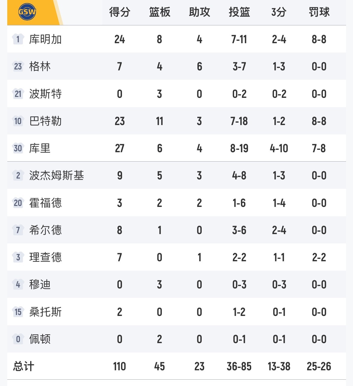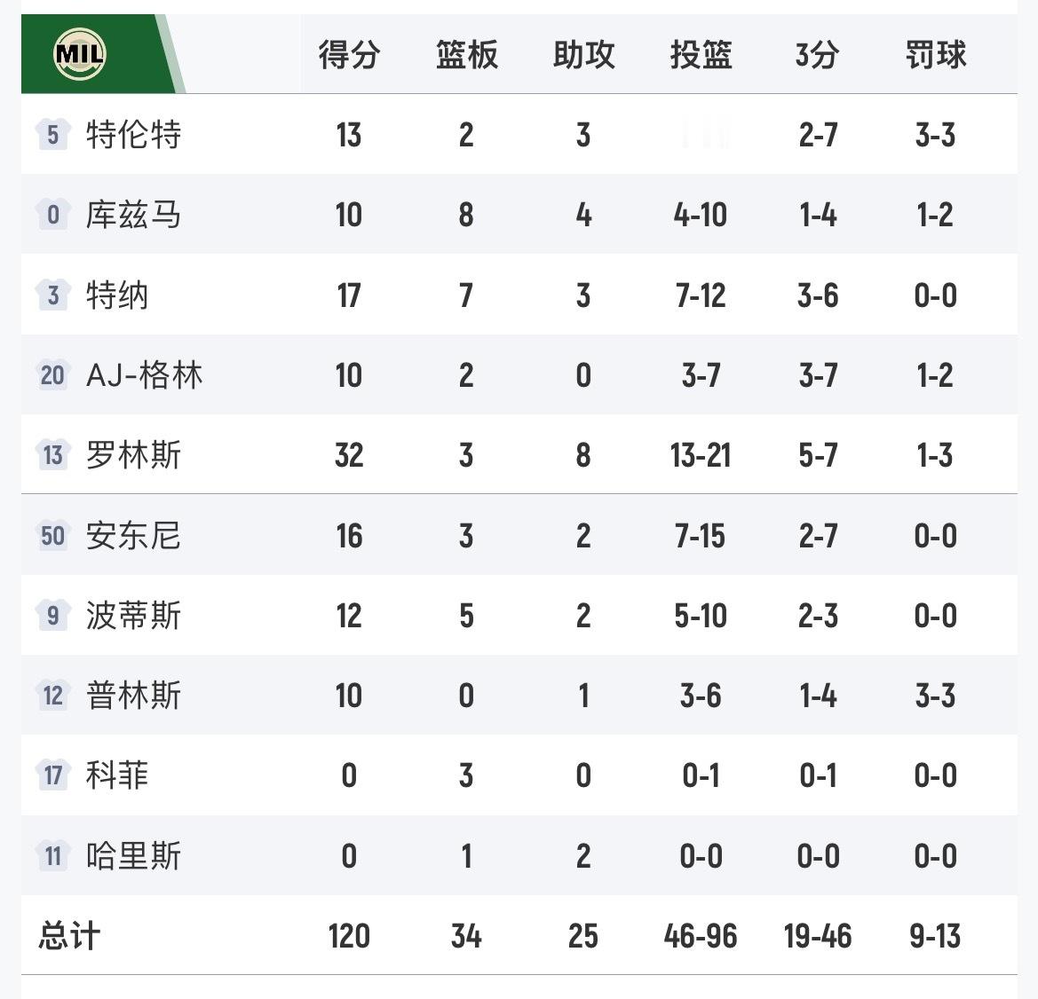 罗林斯生涯之夜,收割比赛! 雄鹿120-110击败勇士。罗林斯32分3板8助攻,库里27分6板4助攻5失误。勇士vs雄鹿