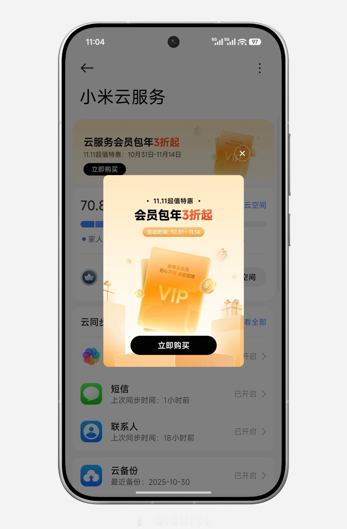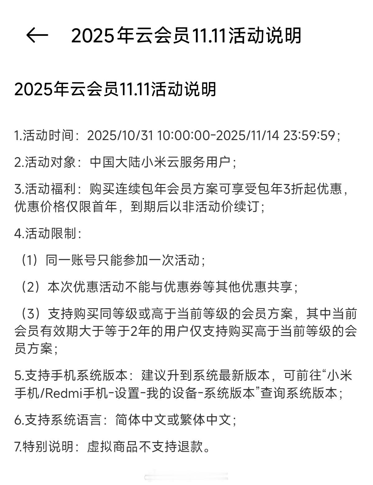 小米云服务双11大促来了,10月31日10点~11月14日,云服务会员包年3折起。