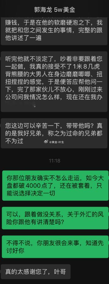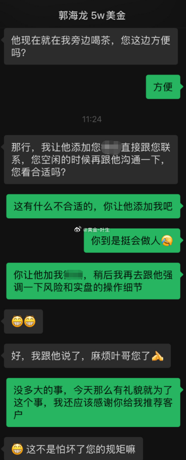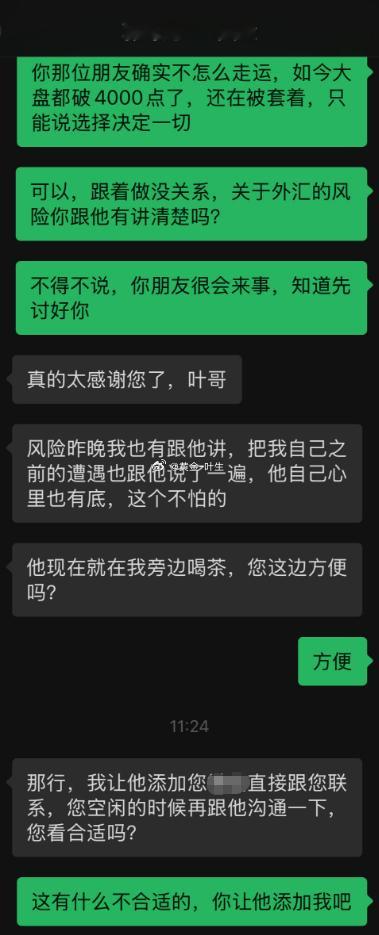 有一种信誉叫朋友介绍,有一种信任叫我就找你[yeah]。前几天顺利chujin的郭先生介绍一位朋友加入叶生实战团队,具武先生所述他的这位朋友之前自己操作,对于操作技术、行情把握都不足,见到郭先生赚到qian了后,就拜托郭先生牵个线,想要跟上叶生收割市场的步伐。我知道一个人的力量总是有限的,懂得借力使力的才是智者。同时也希望实盘的每一位朋友,珍惜好每一次的操作,叶生我作为实盘的掌舵者,真诚对待每一位实盘朋友,同时也希望我这艘小船,早日航行海洋!