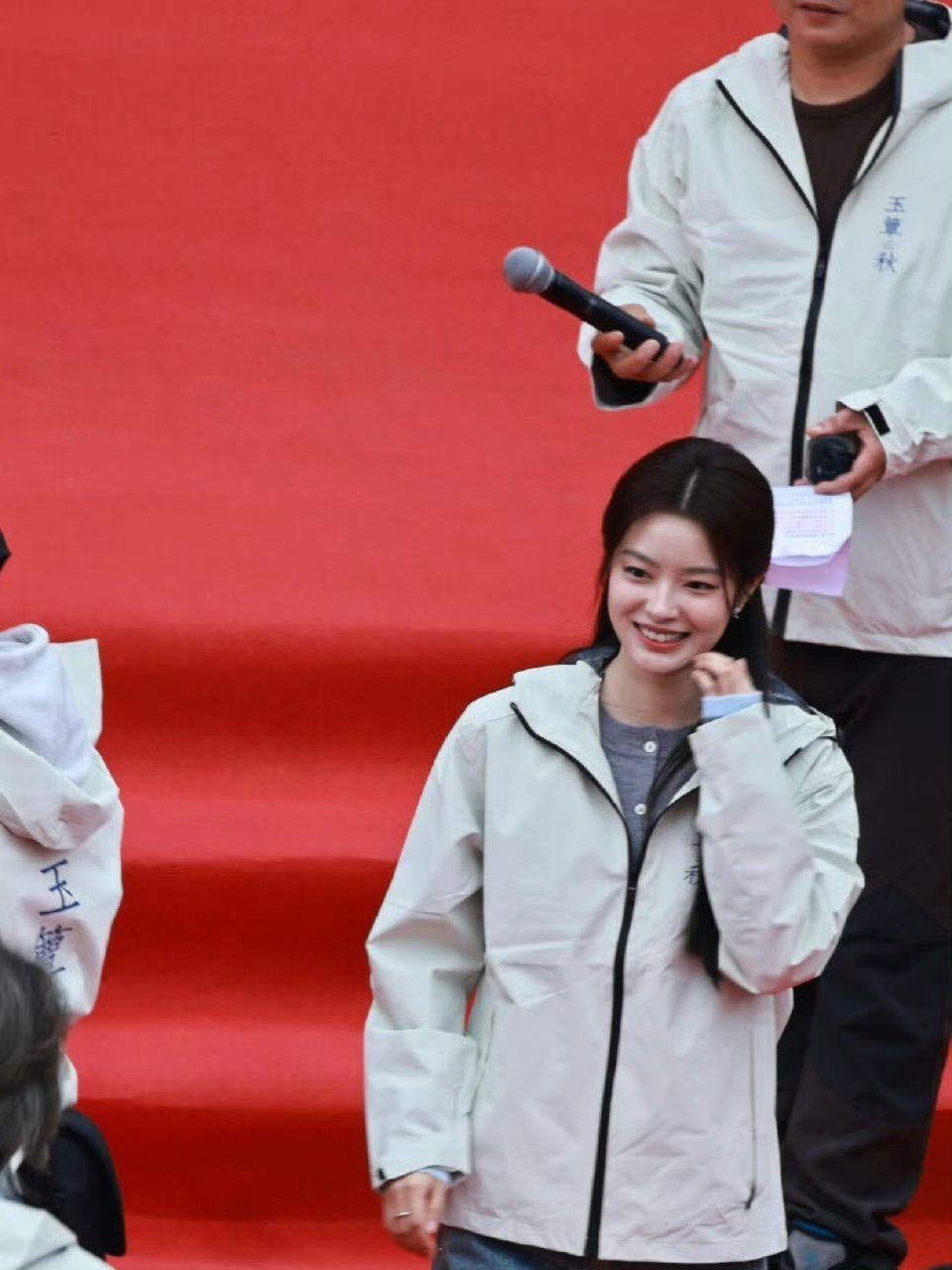 张天爱跟素人合影,胯真的好宽,大宅院似的