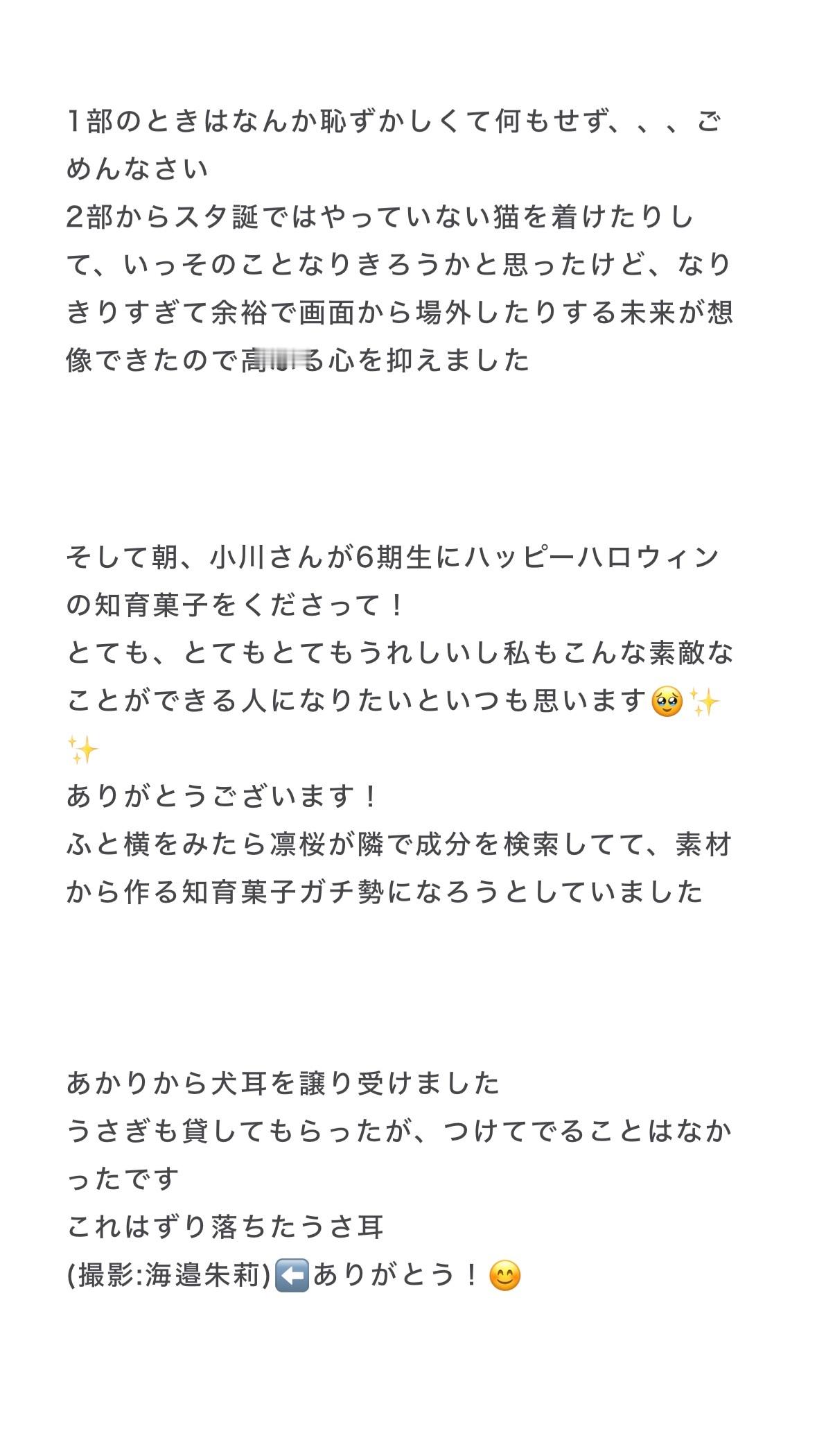 大越ひなの「ハロウィン回でした🎃🎃ミーグリ前に、朝からハロウィンを取り込もうと大好きなかぼちゃの煮物を食べて、無事フルパワーでした💪🏻 ̖́-夜ご飯を決めたりコスプレを当ててみたり、たくさん皆さんから笑顔をもらったり、心地良い温度の内容の会話が弾んで、それもまた楽しかった〜(*´︶`)」