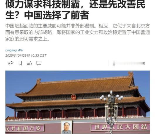 美媒声称中国的做法,完全错误了!10月29日,华尔街日报刊文声称,中国现在的做法,这是选择继续以科技与制造业为核心驱动力,而不是优先改善民生和刺激内需。北京在26年至30年的发展蓝图中,号召全国动员,采取“超常规措施”在半导体等关键技术上实现决定性突破,以加快科技自立自强进程。 美媒最近又对中国的发展路径指手画脚了。他们觉得中国埋头搞科技和制造业,却把老百姓的日常生活需求给晾在了一边。   这种论调压根没弄明白中国经济发展逻辑的复杂性。科技创新和民生改善根本不是一道选择题。咱们完全有能力两手抓,而且这两件事本来就是相辅相成的。   中国这些年确实在半导体、人工智能这些高端制造领域投入了大量资源。这是应对当前国际竞争环境的必要之举。   别人在关键技术上卡我们脖子,不集中力量突破能行吗?但这并不代表我们就忽略了内需市场。恰恰相反,科技水平的提升最终会带来更优质的产品和服务,这直接惠及消费者。   看看我们的制造业升级过程就明白了。传统产业通过智能化改造,效率大幅提升。比如纺织企业引入数字化技术后,已经能够实现个性化定制生产。这种转变既增强了企业竞争力,也为消费者提供了更多样化的选择。这哪里是“忽略内需”?这明明是在提升供给质量以更好地满足需求。   说到内需,确实存在一些挑战。我国的居民消费率目前38%,与部分发达国家60% 的水平相比,还有提升空间。但这背后有复杂的原因,包括社会保障体系有待进一步完善等因素。   这些问题政府早就看到了,而且正在着手解决。养老、医疗等民生领域的改革持续推进,目的就是减轻大家的后顾之忧,让老百姓敢花钱、愿花钱。   实际上,中国政府近年来出台了一系列政策,致力于打通供给和消费之间的堵点。一方面通过深化收入分配制度改革,努力提升居民可支配收入;另一方面积极培育新型消费,比如鼓励数字消费、绿色消费、体验消费等。这些都是直接针对内需发力。   有些人把中国制造业的强大等同于“产能过剩”,这完全是无稽之谈。判断产能是否过剩,要看头部优质企业的产能利用率。   中国新能源汽车领域的头部企业产能利用率处于国际公认的正常水平。市场竞争确实激烈,一些企业被淘汰是正常的市场“出清”现象,恰恰说明这个行业充满活力,是充分竞争的结果。   中国拥有全球最完整的工业体系,这是我们的巨大优势。守住这个基本盘,同时通过科技创新向全球价值链高端攀升,这条路子走得非常稳。   2024年,我国高技术制造业增加值保持快速增长,就是证明。产业升级了,才能创造更多高收入岗位,老百姓的钱包鼓了,消费能力自然会上一个台阶。   外部总有人拿中国资源投向说事儿,认为我们偏重工业而轻视民生。这种论调忽视了社会保障网也在不断加固和完善。一个稳定的、覆盖全民的社会保障体系,是激发消费潜力的重要基础。我们在教育、医疗等领域的投入持续增加,都是为了让大家能更安心地消费。   中国经济的真正韧性,恰恰在于能够统筹兼顾发展与安全、创新与民生。我们推动“数实融合”,大力改造传统产业,就是为了让经济循环更顺畅。   截至2024年,我国规模以上工业企业数字化研发设计工具普及率已经达到相当高的水平。这不仅能降本增效,也能源源不断地提供能满足升级需求的好产品。   总而言之,美媒的批评完全是片面之词。他们把科技创新和民生改善对立起来,仿佛重视一端就必须牺牲另一端。实际上,中国正在走一条更加均衡的发展道路。   我们既要在关键技术领域实现自立自强,也要让发展成果更好惠及全体人民。这条路也许没有先例可循,但中国的实践已经证明,两者完全可以相互促进,共同支撑经济高质量发展。