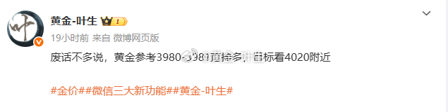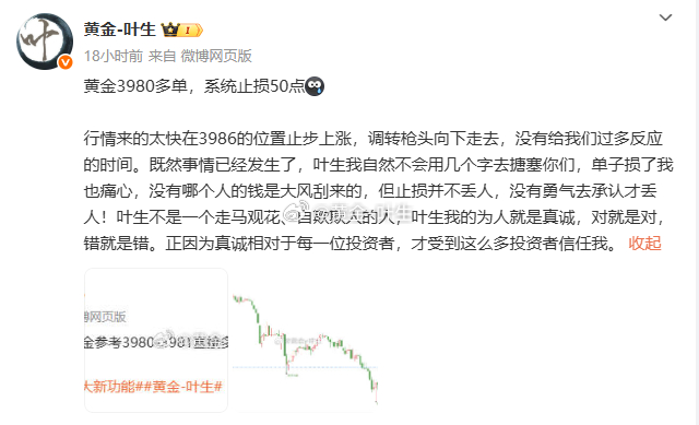 [星星]第三单:黄金3980多单,止损3975,损失50点