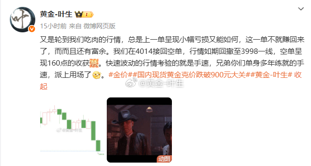 [星星]第五单:黄金3997空单,止损4000,损失30点