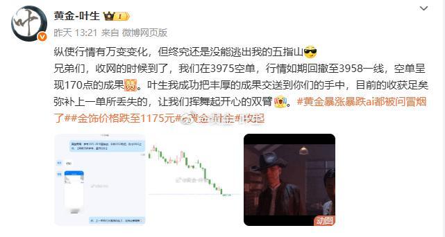 [星星]第二单:黄金3975空单,离场3958,拿下170点