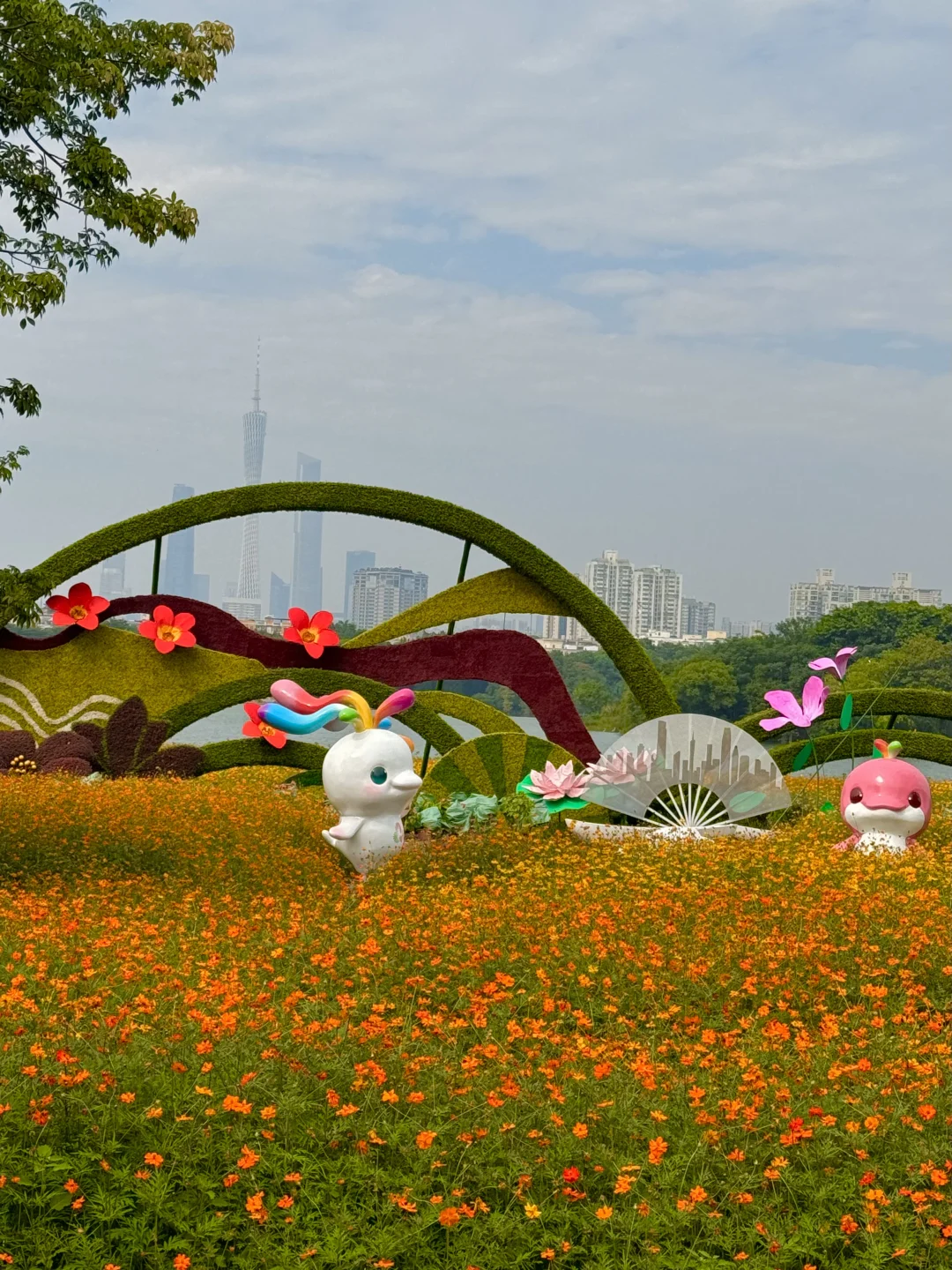 一早赶到广州!就后悔了❗️后悔没有早点来✨ 满园的花齐开!喜迎全运会 广州果然名副其实的花城 公园里有大片的金橙色的花海 五颜六色的的三角梅花镜 各种小花沿路绽放~ 广州的秋天真是倒放的春天! 赏花路线:公园入口左边三角梅花镜➡️过桥后就可以看到五颜六色的三角梅➡️往右边路可以看到绿色的玻璃屋、古风小亭子、超大兔子➡️最后硫华菊花海 📍位置:海珠湖公园 🚇地铁:3号线或11号线大塘站C口 📷拍摄时间:2025.10.30