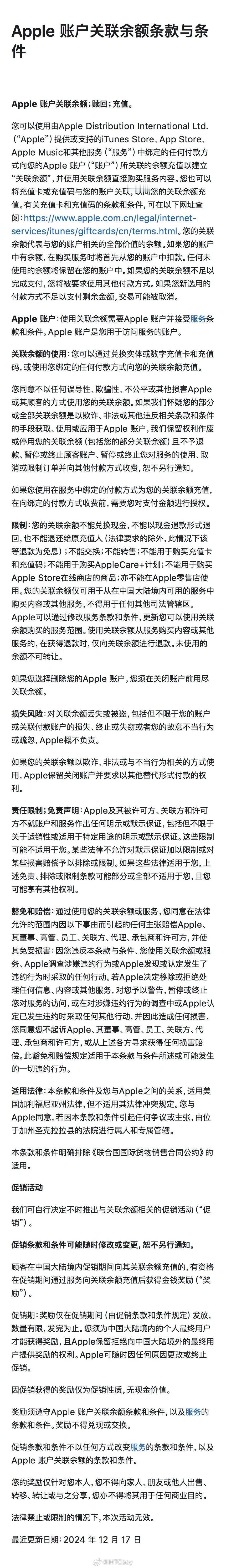苹果账户余额:支持App Store、Apple Music、iTunes Store 和其他服务(“中国大陆暂不支持”)的数字媒体购买。
