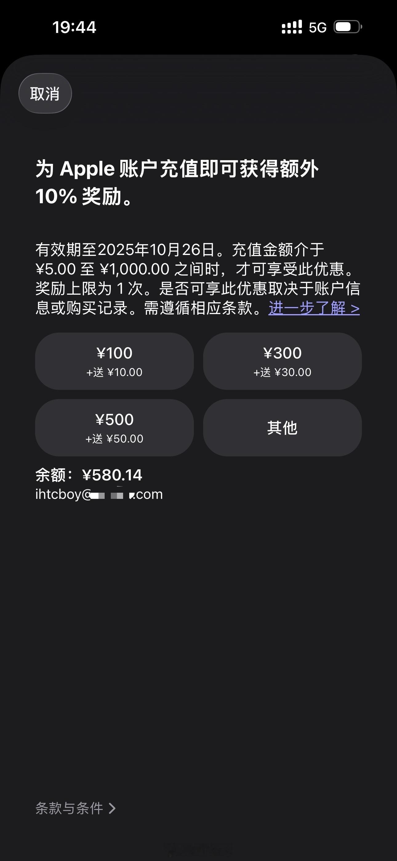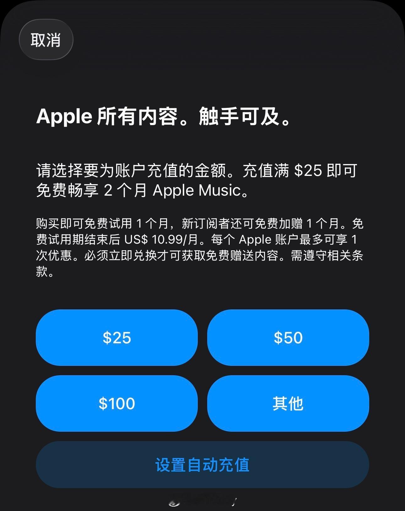Apple账户充值额外奖励10%Apple账户余额充值为Apple账户充值即
