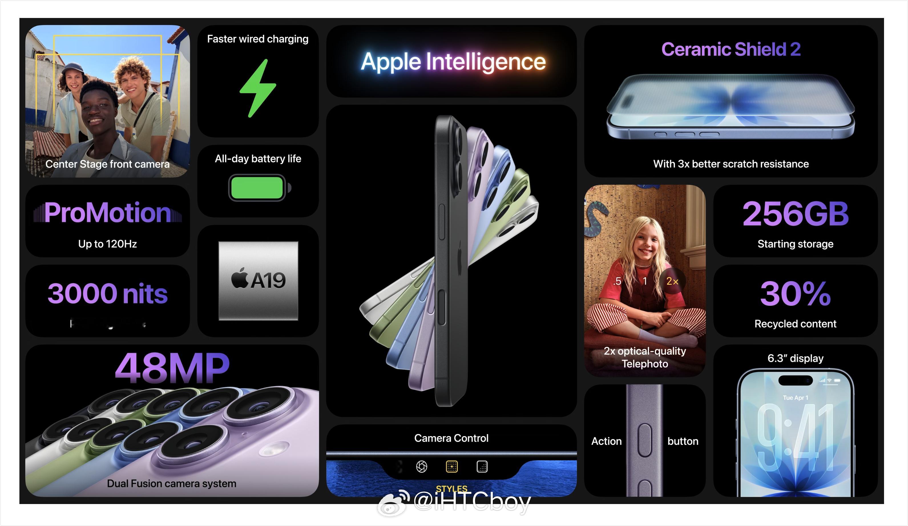 iPhone 实力新巅峰。拥有突破性的电池续航力,配备我们迄今最出色显示屏,并由超瓷晶面板 2 正面守护。强悍的 A19 Pro 芯片采用第三代 3 纳米制程,配备 VC 均热板。还有全上 4800 万像素的后置摄像头,以及全新 Center Stage 前置摄像头。