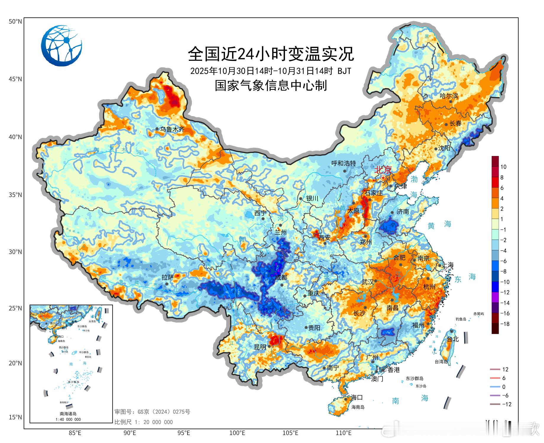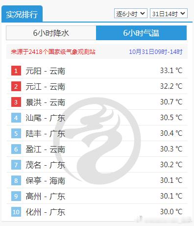 【气温】今天西藏四川等地因为降水遮挡光照,出现降温。四川理县降10.3℃,为14时全国降温最强站点。而云南多地,今天依然晴天,在光照加热下,云南二元——元阳和元江,又包揽了气温榜的冠亚军。