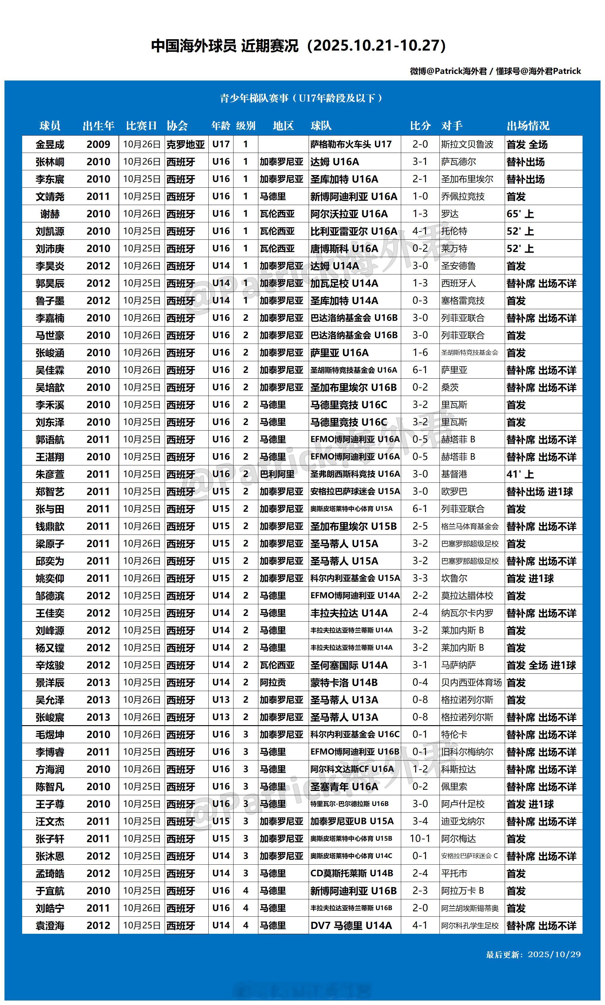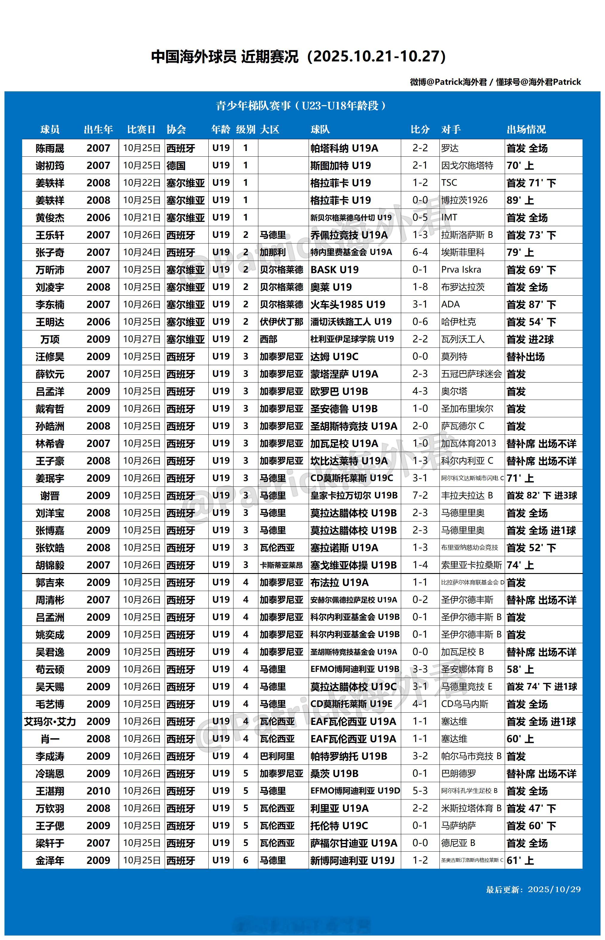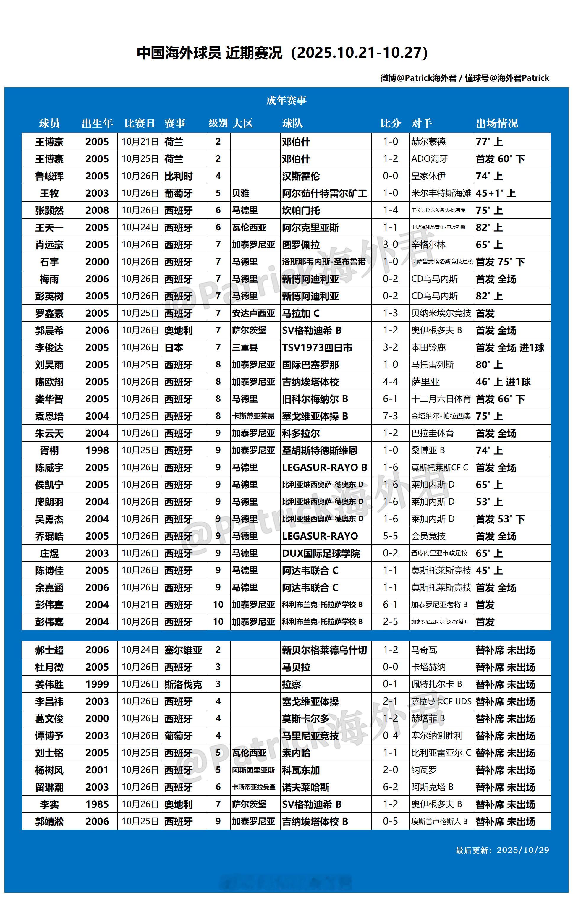 留洋周报 海外球员比赛一览 (2025年10月21日-10月27日)