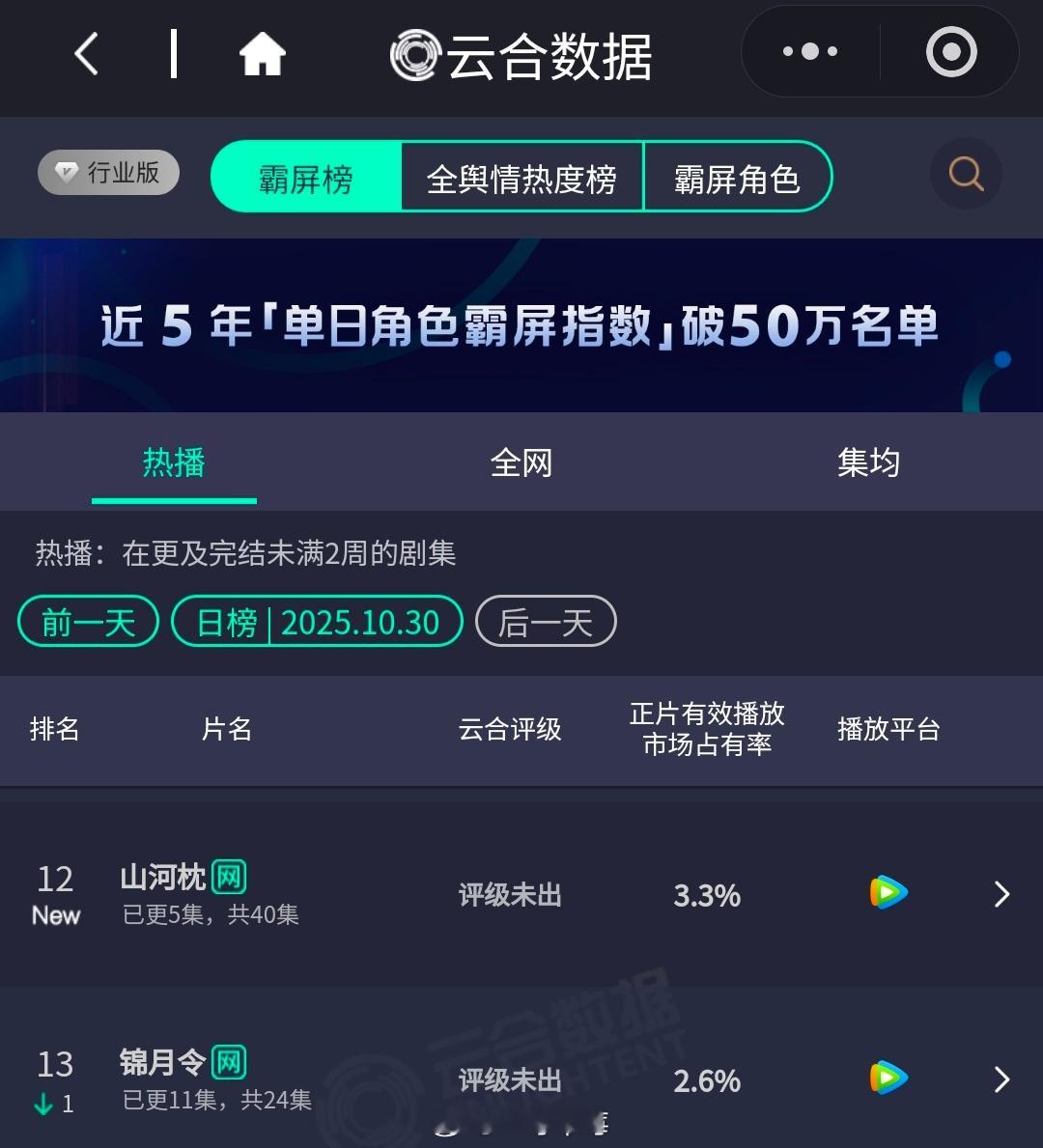 宋茜、丁禹兮《山河枕》首日开3.3%