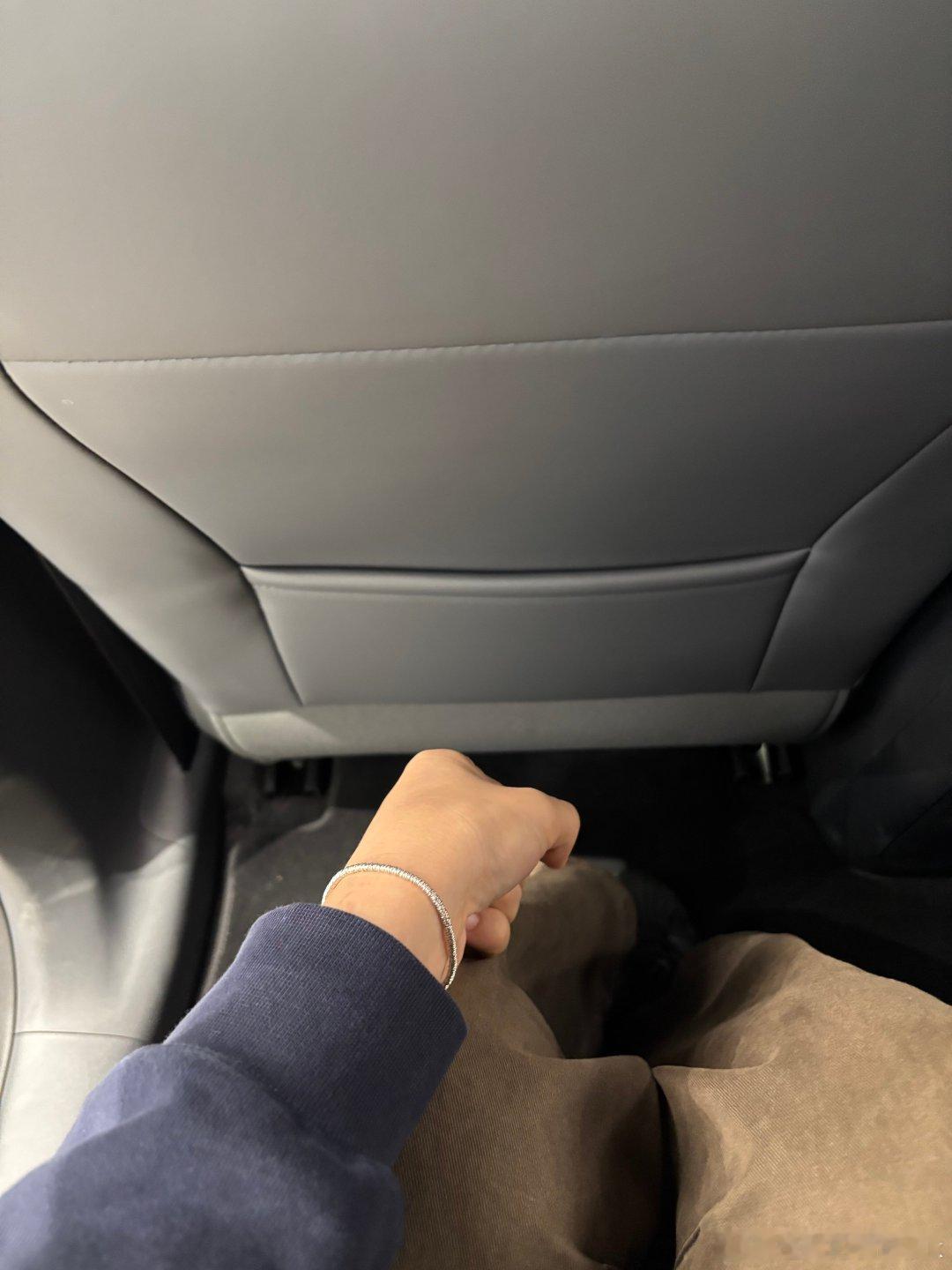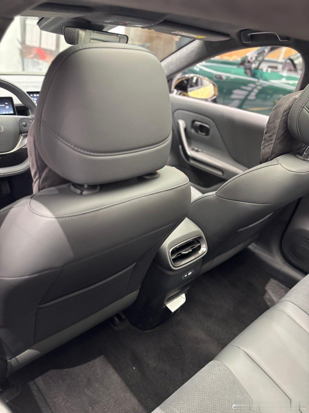 我身高175cm,先坐主驾:把座椅调到舒服的位置,头顶离车顶还有一拳两指,完全不顶头;腿前面空间也够,不用蜷着膝盖。再坐后排,前排座椅没动,膝盖离前排靠背还有二拳,不挤;头顶因为溜背造型,也有一拳空间,正常坐着没问题。我特意拍了张后排图,把拳头放在膝盖和前排之间,空隙很明显,日常带家人出门肯定够坐。