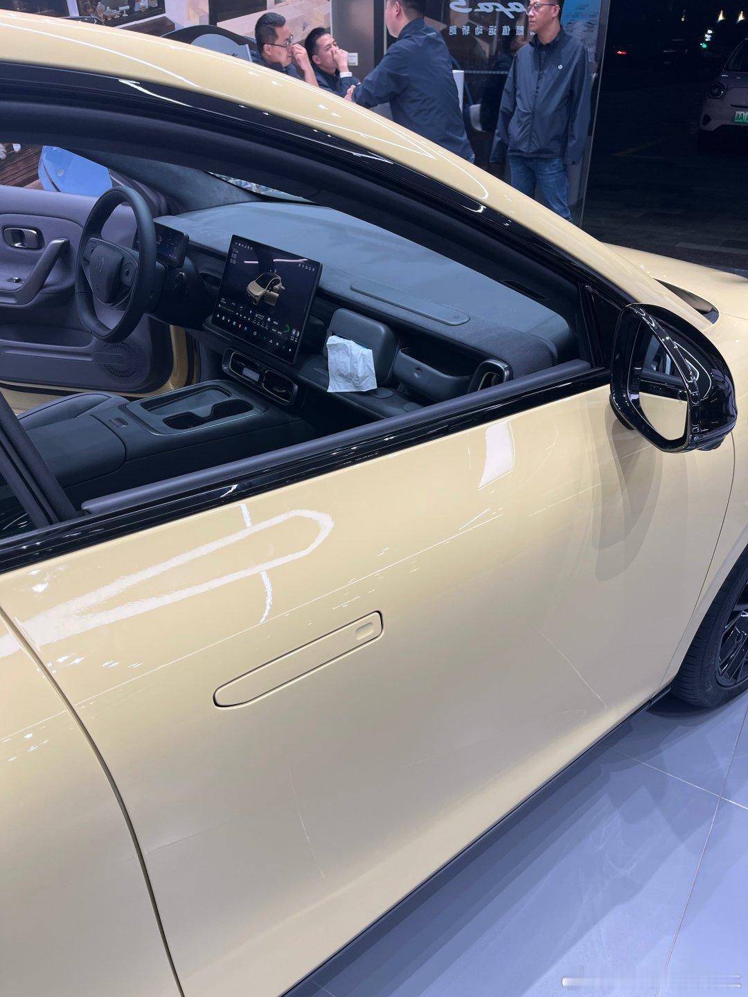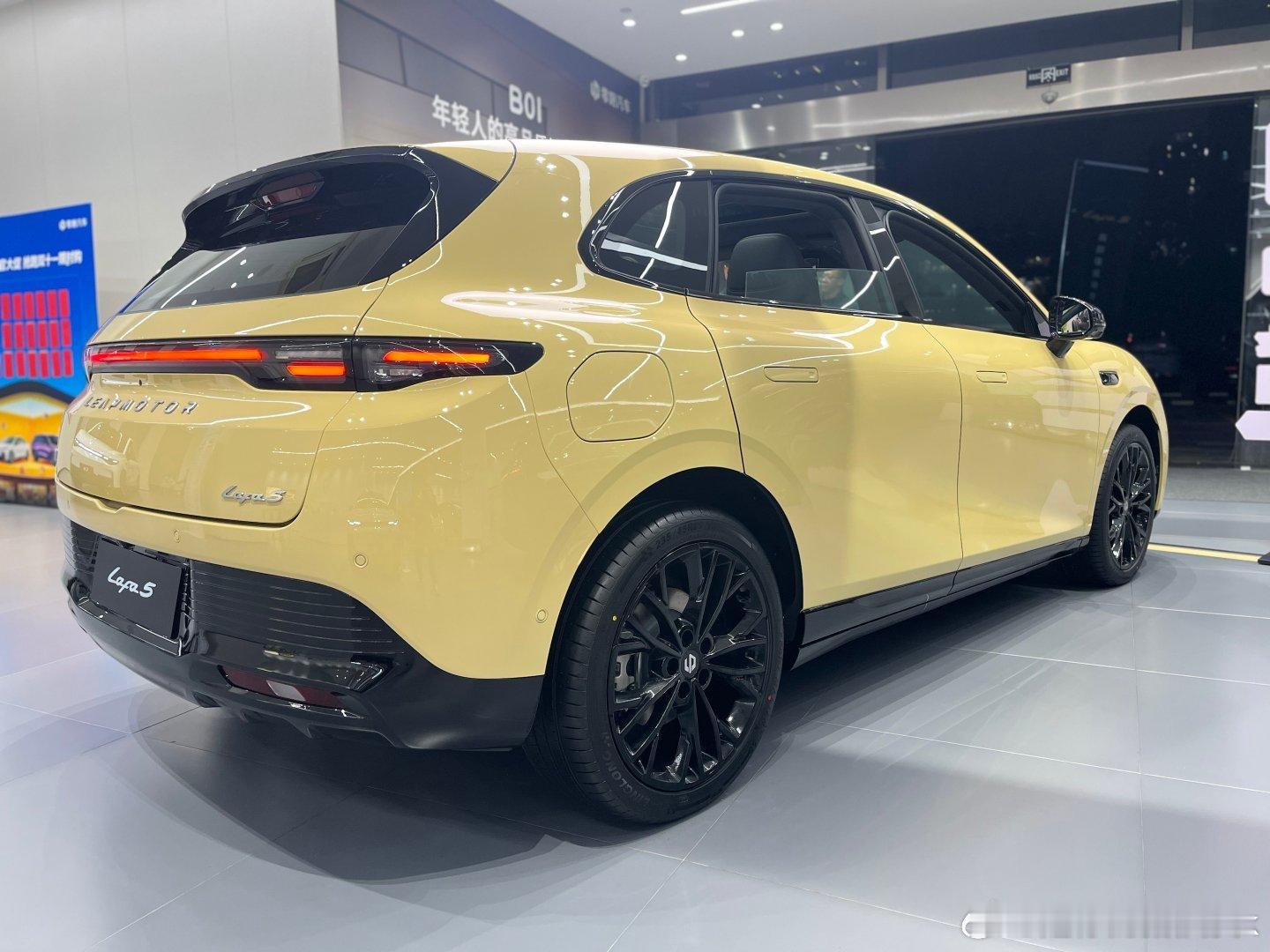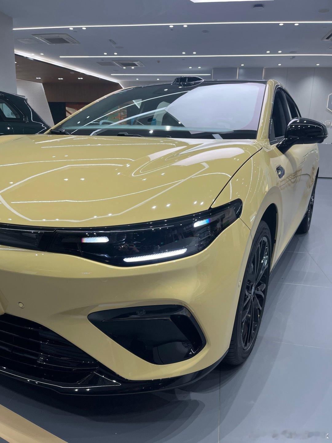 刚进零跑门店,那台黄色Lafa5直接成了焦点——不是晃眼的荧光黄,是带点细腻光泽的“活力黄”,灯光下看着润润的,阳光洒上去还泛着细闪,随手拍张照,不用修图都特别出片。绕车走一圈,轿跑姿态特别明显,从B柱开始往下溜的溜背线条很顺,短前悬、长轴距的设计,让整车看着一点不臃肿,反而透着股运动劲儿。