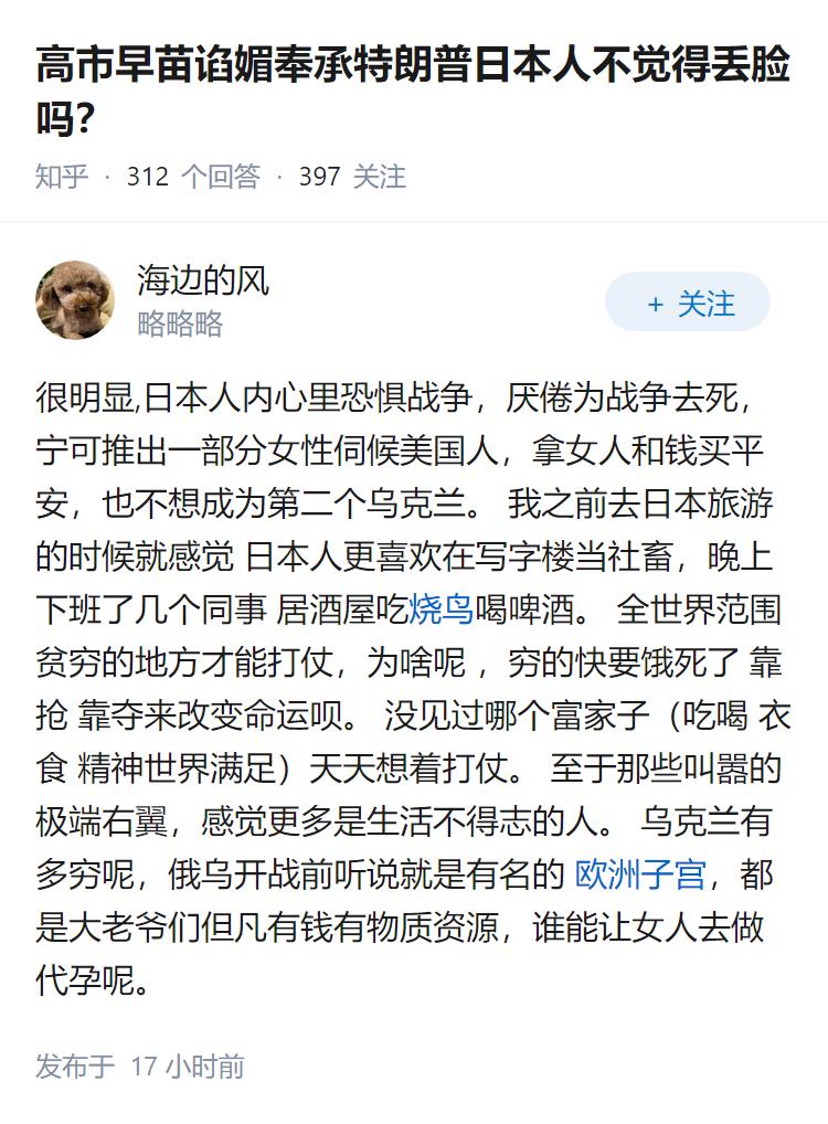 高市早苗谄媚奉承特朗普日本人不觉得丢脸吗?