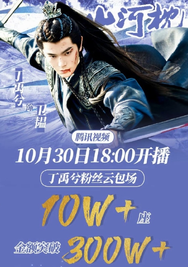 这部剧有点爹不疼娘不爱的感觉,一番女主宋茜现在开始转型了,接了郑晓龙的二番女主剧,已经进组拍戏,对这部剧不算上心,粉丝包了2万云包场,丁禹兮最后一部二番男主古偶,粉丝也算不错,给包了10万座云包场。