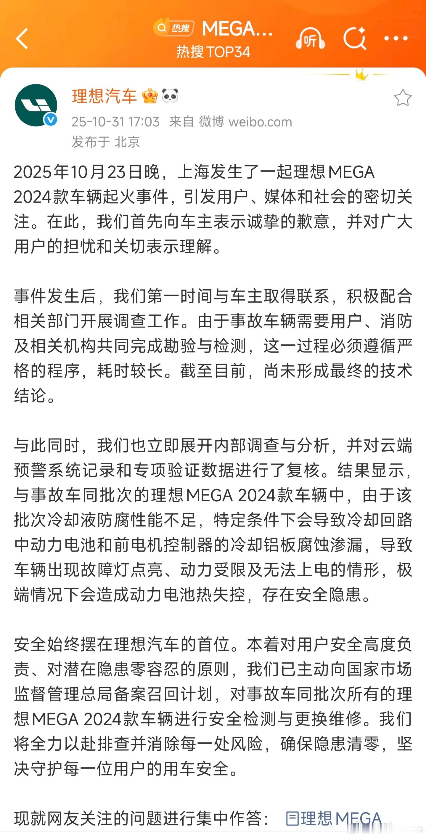 主动召回算不算有担当不知道。但厂商之前是存在侥幸心态的,好不容易今年靠mega让纯电系列赢得了一些认可度,这全部又还回去了。