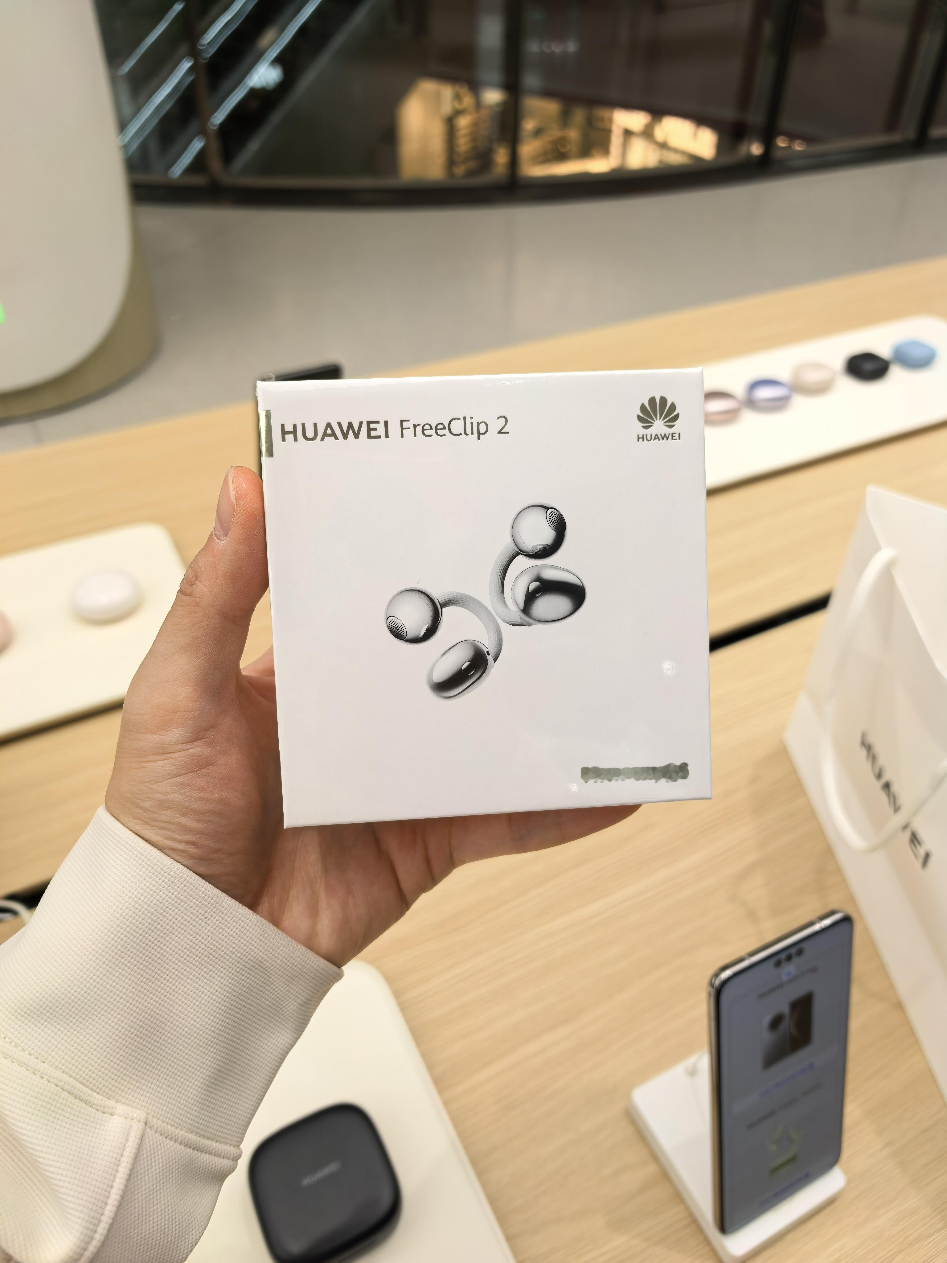 今天在华为店里还给美丽买了 FreeClip 2,之前一代她就一直戴着,特别喜欢,二代升级了无感佩戴、音质、响度和通话降噪,完全打在她的心趴上,选了白色,她戴着挺好看[爱你]