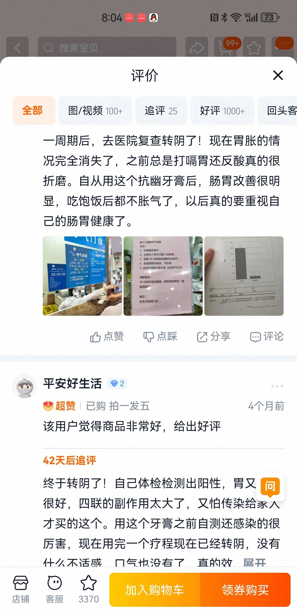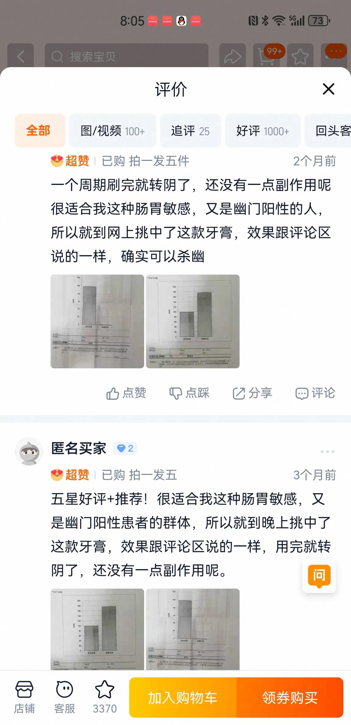 这个日本进口的胃无幽牙膏真能杀死幽门螺杆菌让其转阴吗?我看好多客户网评都说不吃药,刷这个牙膏,幽门螺旋杆菌就转阴了! 真是真的吗?真的心动想给家人买了!但老婆说哪有刷牙就能杀幽门螺杆菌的!估计是噱头哦!