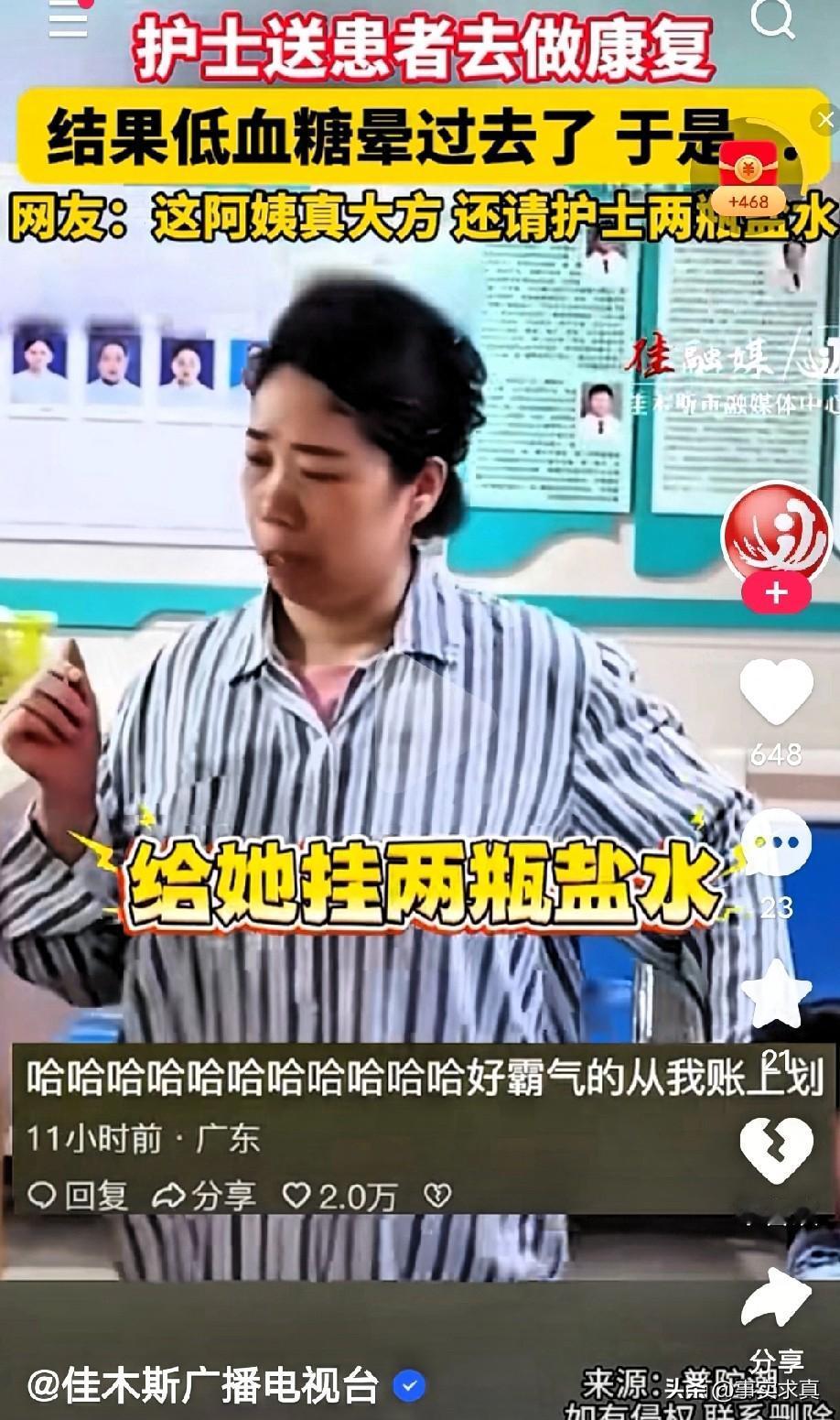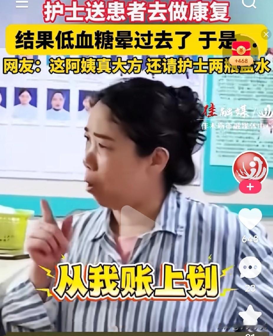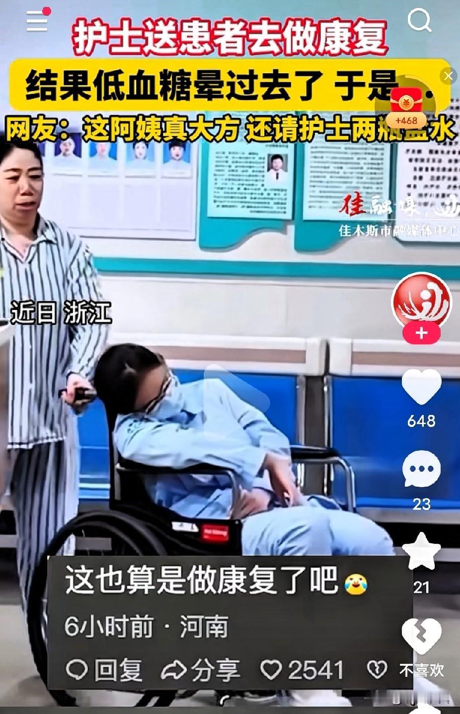 康复患者轮椅推护士挂号打针,患者霸气发声 医院的走廊里,每天都在上演着病痛与守护的日常,而今天一场意外,却让医患角色悄然互换,暖化了所有人的心。 上午的病区依旧忙碌,年轻护士小周推着轮椅,准备送张阿姨去康复训练室。张阿姨术后恢复良好,每次训练都格外配合,两人一路上还轻声聊着家常。可刚走到走廊中段,小周突然脚步踉跄,脸色瞬间苍白,没等张阿姨反应过来,便直直倒在了地上。 这一幕让周围人都慌了神,没想到本该被照顾的张阿姨却异常镇定。她扶着轮椅慢慢起身,查看了小周的状况,凭借自己多年的就医经验,判断大概率是低血糖晕倒。没有丝毫犹豫,张阿姨转动轮椅,小心翼翼地将小周扶到轮椅上,稳稳地推着往护士站走去——曾经被护士护送的患者,此刻成了守护护士的“临时护工”。 到了护士站,张阿姨熟练地和护士站长大声说明情况,还主动提出:“她这是低血糖脱力了,先挂两瓶生理盐水补补。”不等站长安排,她已经帮忙递上用品,全程有条不紊。更让人暖心的是,挂完盐水后,张阿姨认真地对站长说:“这两瓶生理盐水记我账上,可别让孩子自己花钱。” 这戏剧性的反转,被在场患者和医护人员看在眼里,纷纷点赞。网友得知后更是调侃:“大姨也太讲究了!要是所有患者都这么明事理,哪来的医患纠纷?” 其实大家感动的,不仅是张阿姨的“讲究”,更是她在意外发生时的沉着与善意。 护士守护患者是职责所在,而患者反过来体谅护士、伸出援手,却是跨越身份的温情。这场轮椅上的互换,没有惊天动地的壮举,却用最朴实的行动诠释了医患之间本该有的信任与包容。在医患关系常被讨论的当下,这样的暖心事提醒我们:善意从来都是相互的,多一份理解,少一份隔阂,医院的走廊也会因这份双向奔赴的温柔,变得格外温暖。 图片来源网络,免责声明:语录和图片素材来源网络公开渠道,如有侵权,请及时告知,联系删除。