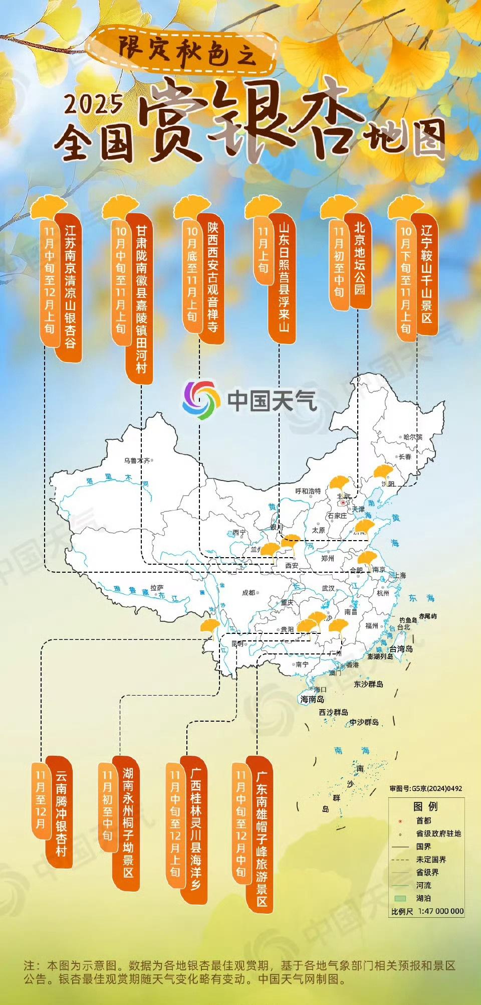 【2025年全国银杏观赏地图】北方多地已进入银杏最佳观赏期眼下正是秋景正盛时,我国从北到南将陆续迎来银杏最佳观赏期,满树金黄勾勒出的秋日画卷正徐徐展开。戳图↓↓2025全国银杏观赏地图,带你捕捉这一抹限定秋色!(中国天气网)网页链接