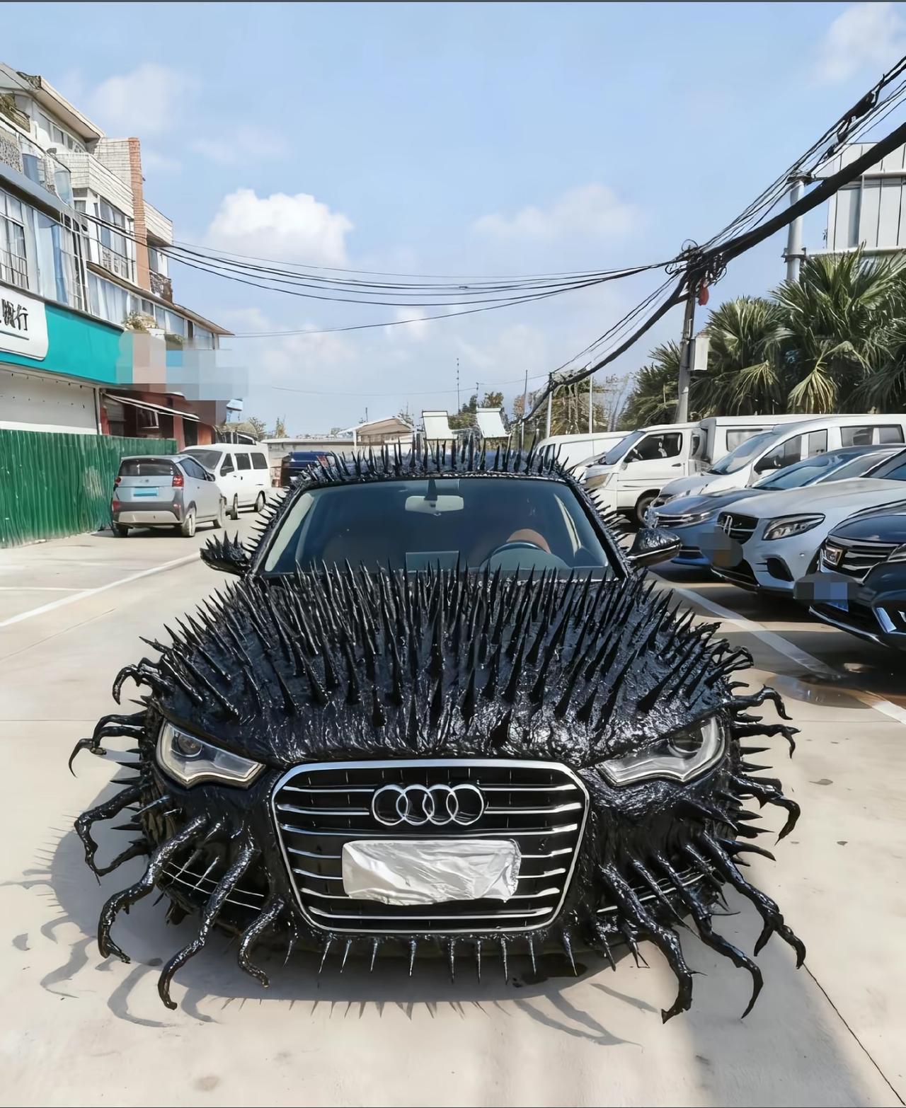 当奥迪化身“深海刺客”,这波改装直接把“防刮蹭”焊死在车身上!浑身尖刺+触手buff叠满,停在停车场自带“生人勿近”结界,连外卖软件都得为它标个“霸气取餐中”~这哪是代步车,分明是移动的“海底黑武士”,路过的车都得默默挪三米!