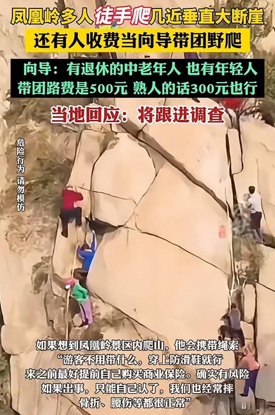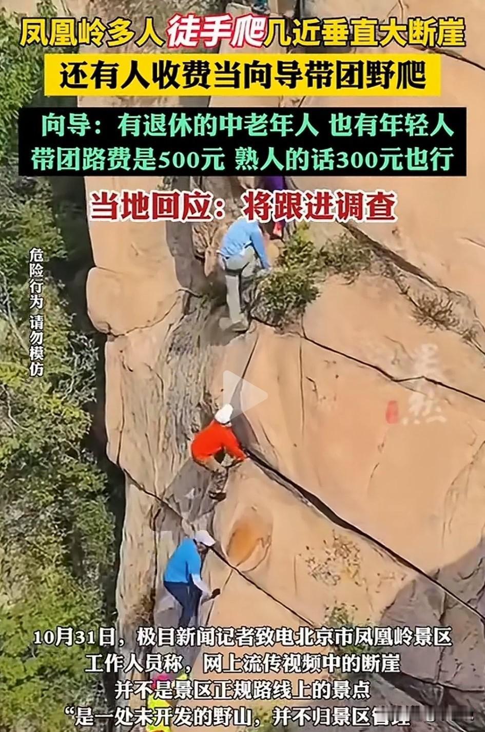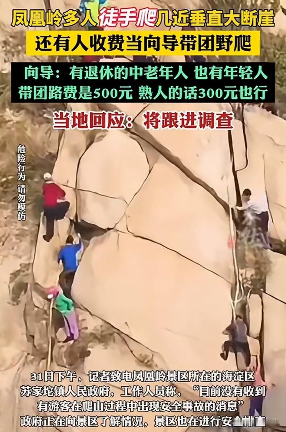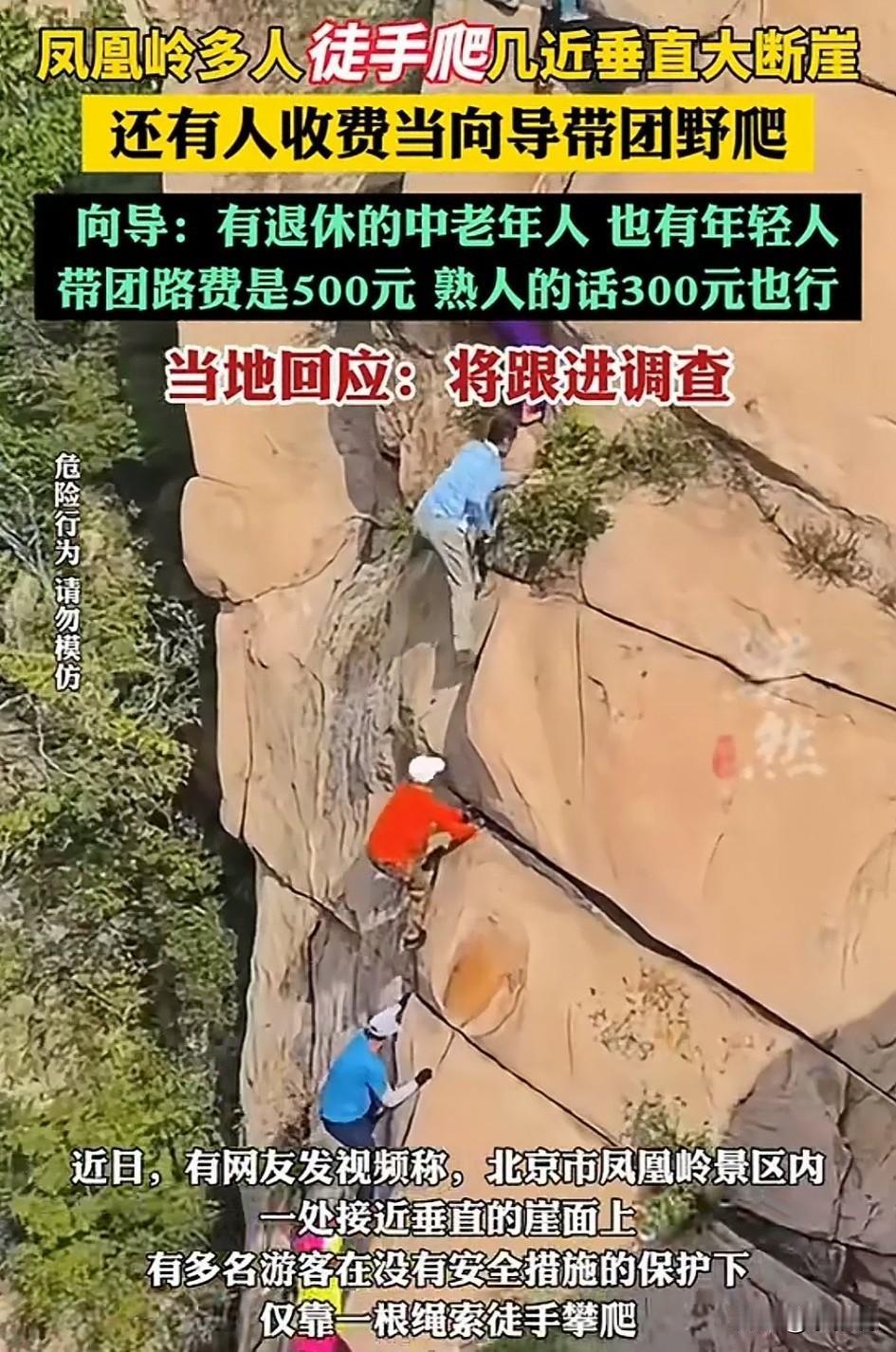 我一直以为徒手攀岩非常专业危险,没想到,高手在民间,一根绳,一双防滑鞋,就能体验攀岩的刺激。 就这坡度,快垂直了吧!真的只有一根绳,真的有退休中老年人。 我能说什么呢!果然北京人民的体质就是好,退休人员不止公园健身是一把好手,徒手攀岩也是不落人后。 我就问问,多少条友,敢去爬一个凤凰岭,反正没有安全绳,我是不敢的。 带路几百块,不知道真出事了,能不能赔的起。攀岩
