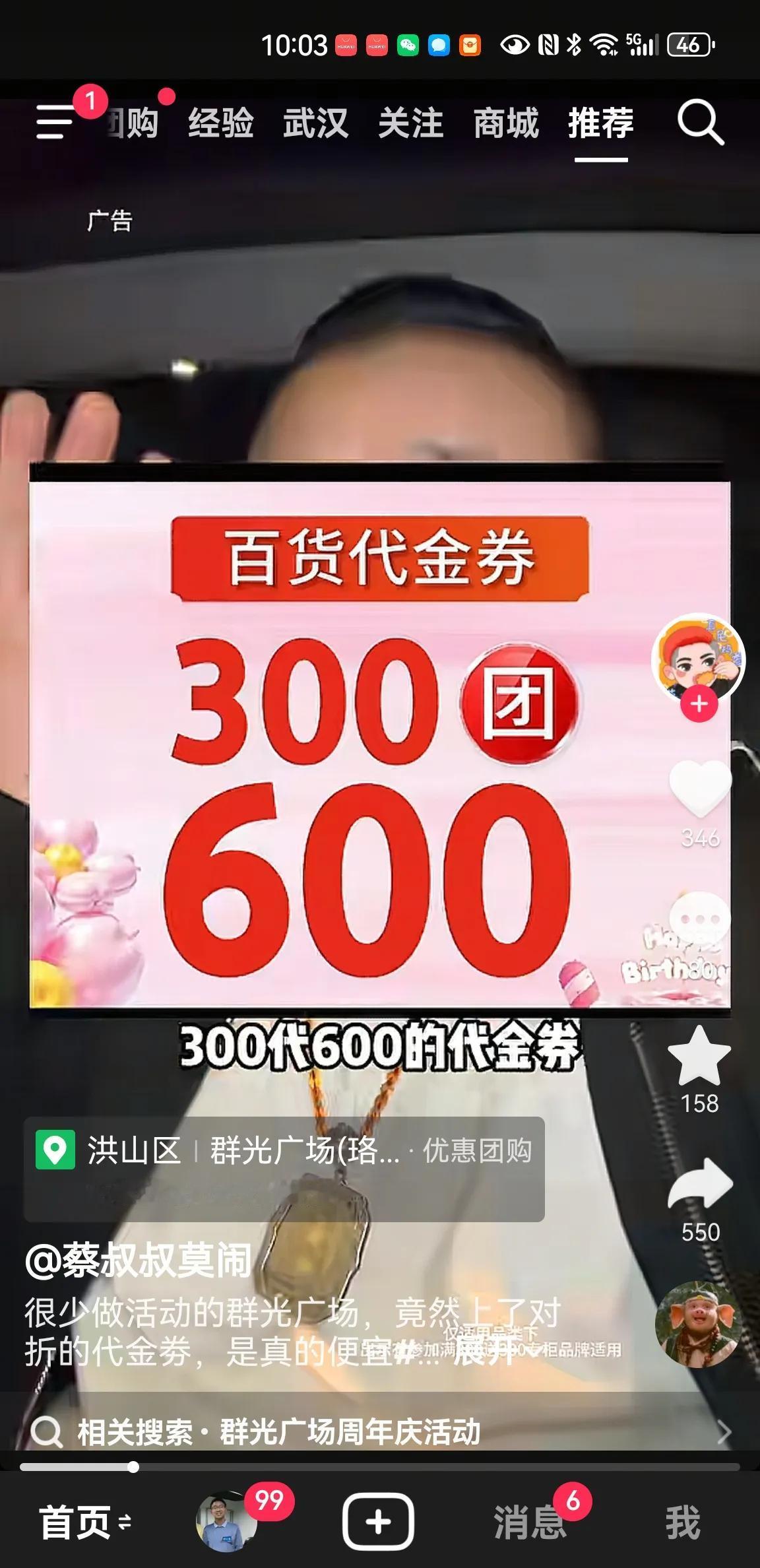 武汉的亲们心动了吗?群光广场店庆放大招,广发百货代金券300抵600,不限张数使用,相当于五折。您会囤券吗? 群光广场是优雅高贵的代名词,平时都不敢往这里逛,逛群光穷光。 这次百货商品五折起。真的可以考虑囤几张代金券。武汉群光广场店