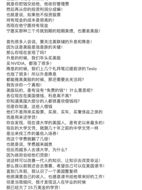 然后给到的利息会下跌,你会不会提前先买入美债?