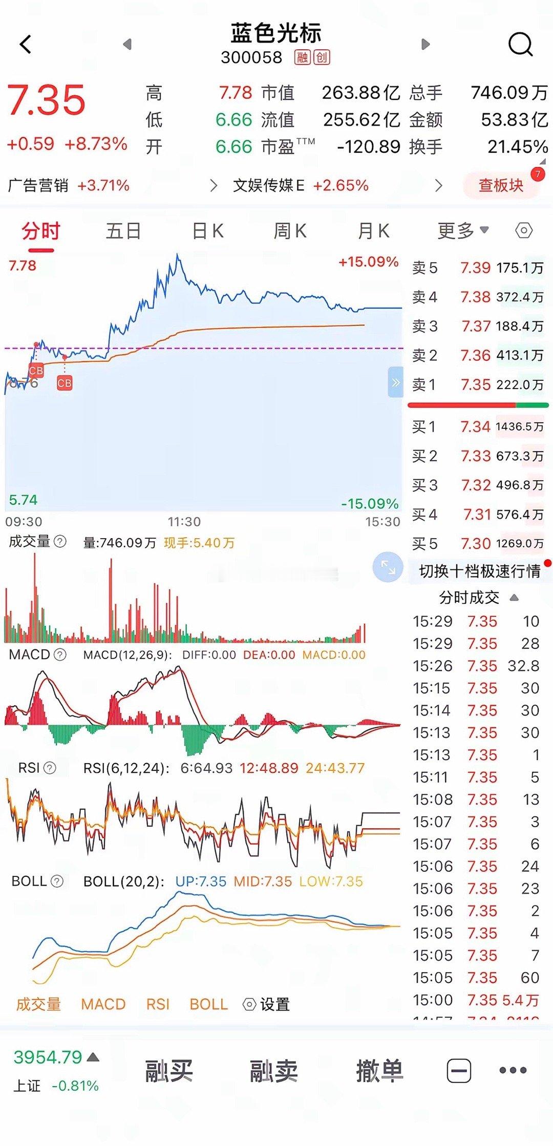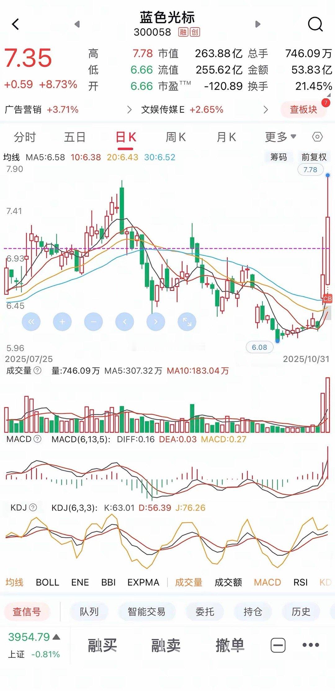 今天根据量能战法进了蓝色光标,目前小有收获中!