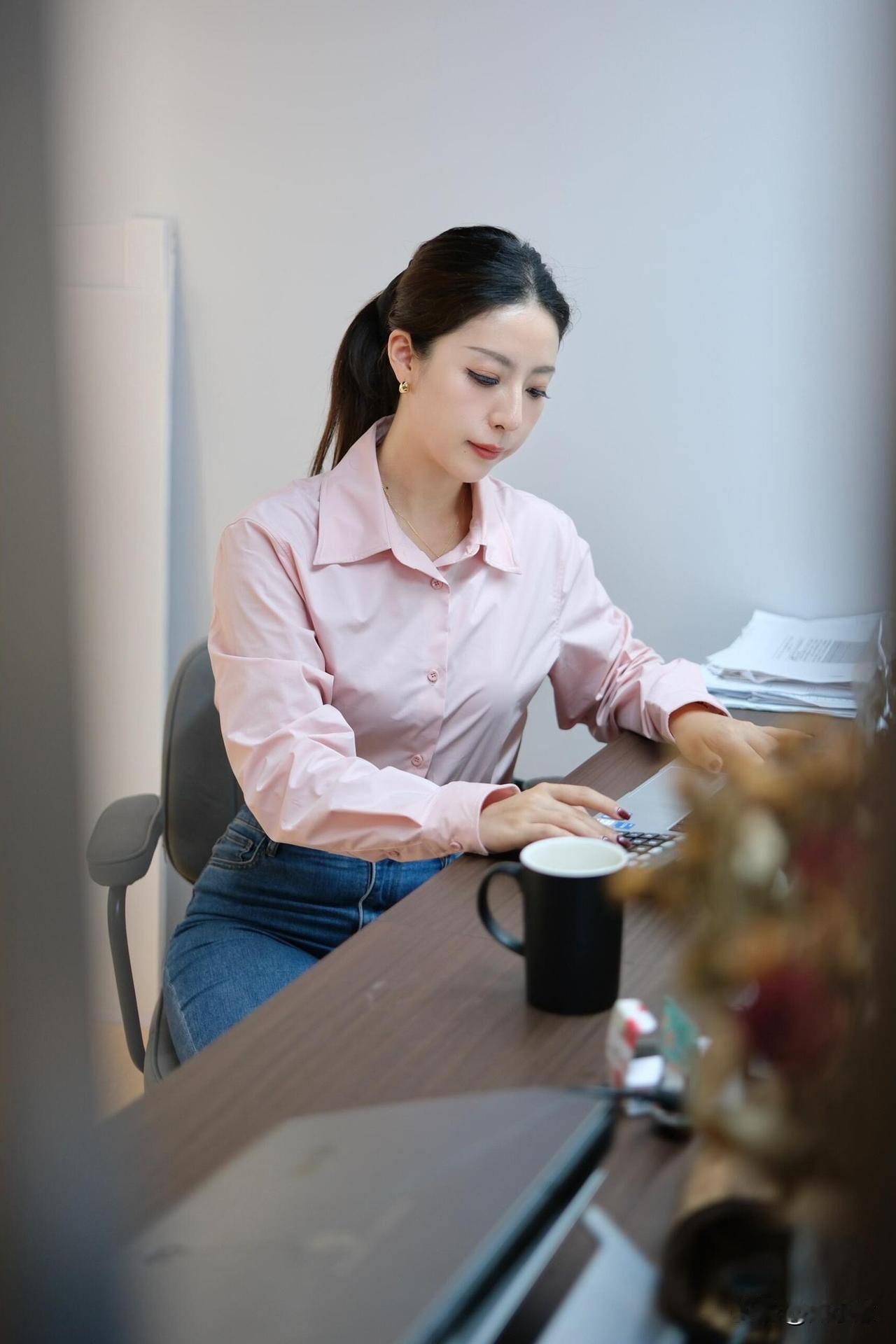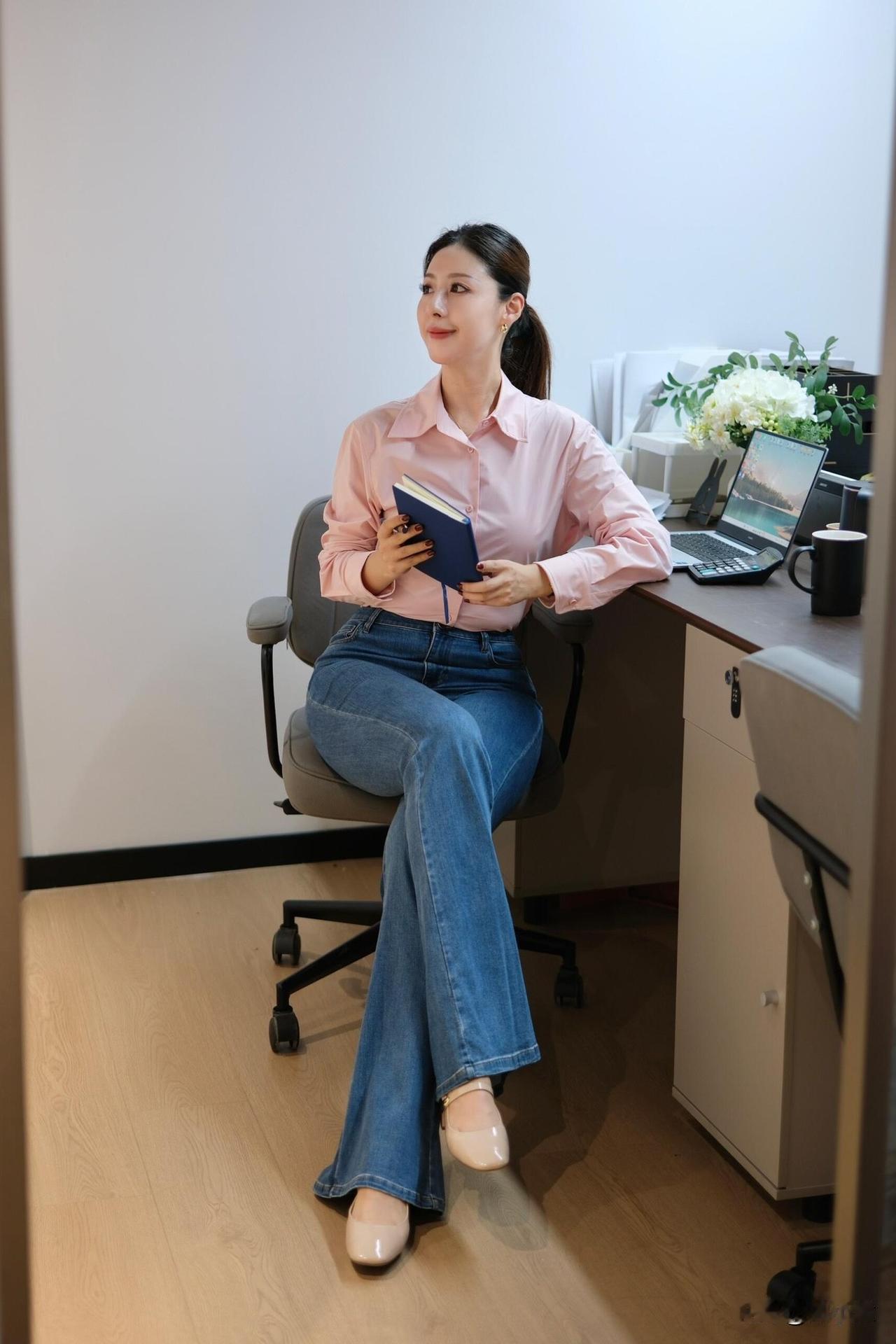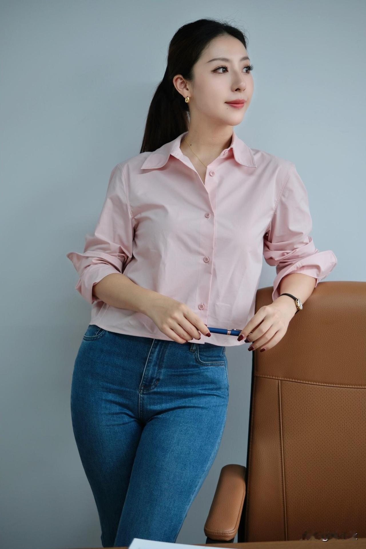 30➕𝐎𝐟𝐟𝐢𝐜𝐞|粉黛职场,温柔的力量~|一进公司就被同事夸“今天好温柔” 粉色衬衫➕牛仔裤👖,太舒服! 衬衫料子滑滑的,牛仔裤也不会勒 坐一整天都没压力~~ 职场松弛感 都市通勤穿搭 办公室日常 牛仔裤