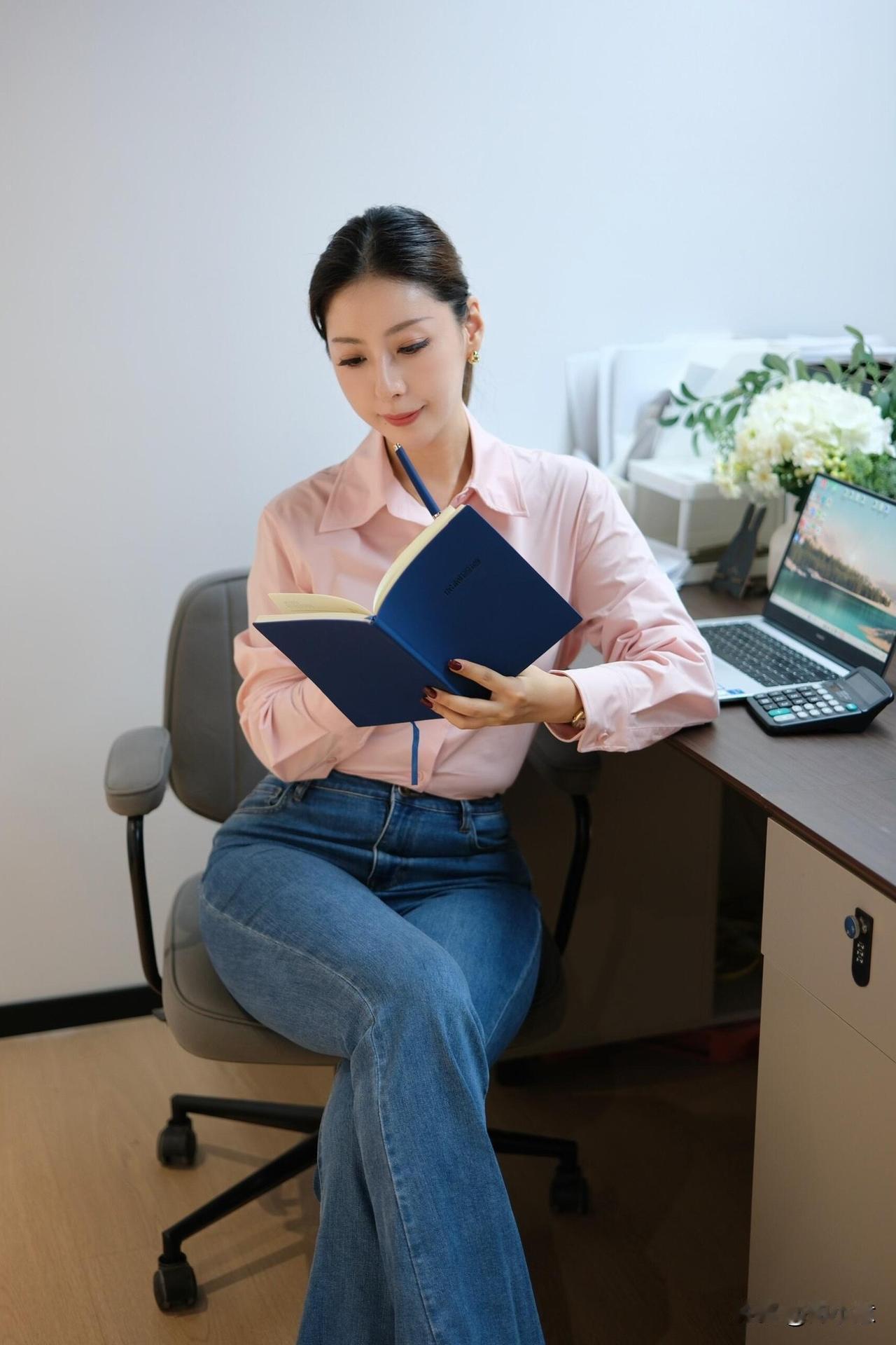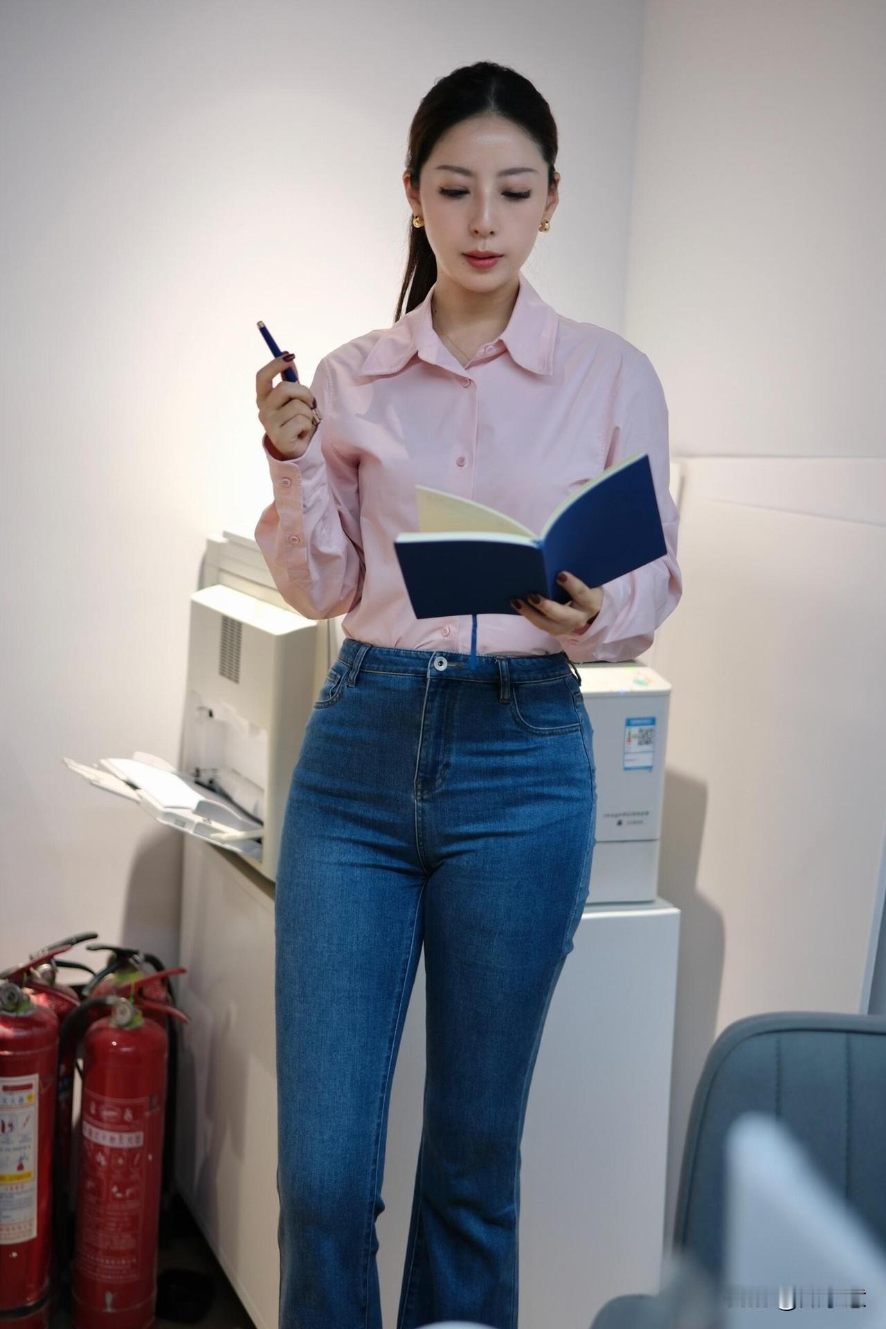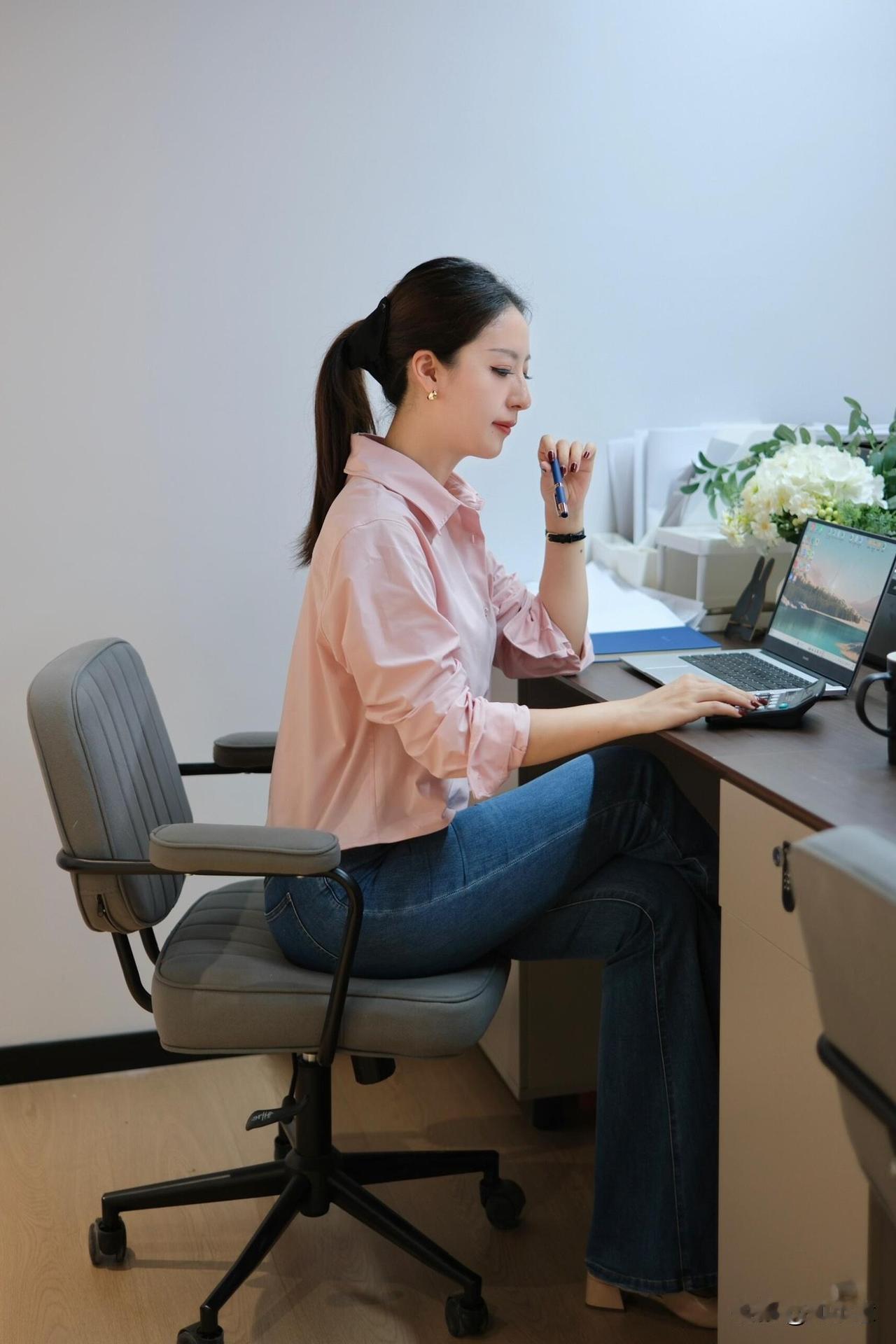 30➕𝐎𝐟𝐟𝐢𝐜𝐞|粉黛职场,温柔的力量~|一进公司就被同事夸“今天好温柔” 粉色衬衫➕牛仔裤👖,太舒服! 衬衫料子滑滑的,牛仔裤也不会勒 坐一整天都没压力~~ 职场松弛感 都市通勤穿搭 办公室日常 牛仔裤
