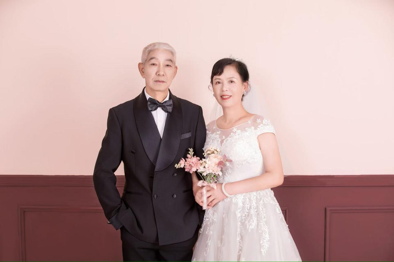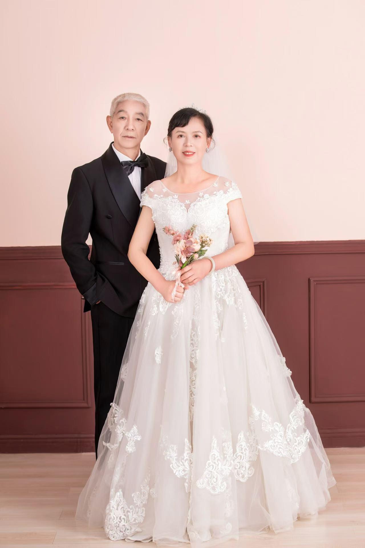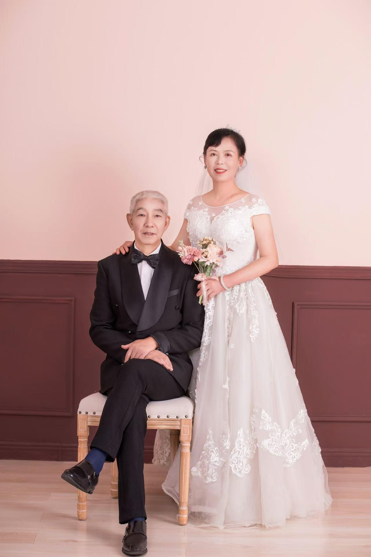 感动! 感恩父母,为父母金婚纪念日, 补拍婚纱照。 当年父母亲结婚时,只拍了一张结婚登记照,现巳发黄,为了不让父母留下遗憾,今年,远在美国宾夕法利亚的女儿,在父母亲结婚五十周年纪念日,带着两个孩子,不远万里从美国赶回,为父母补拍了这张婚纱照,让两位老人激动得泪目。街坊邻居都举大拇指直夸女儿孝顺老人结婚纪念照 带父母拍纪念照 为父母补拍婚纱照