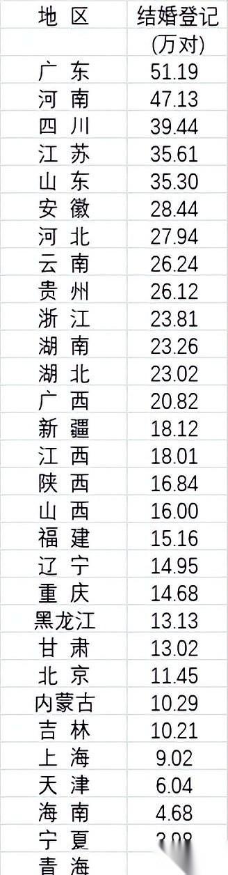刚看到个数据,内蒙古去年10万对新人结婚,然后,将近7万对夫妻离婚。 我当时就愣住了。 这哪是办喜事,这简直是渡劫啊。 两个人从心动到心梗,中间可能就隔着一套房、一个娃、两对需要操心的爹妈。搭伙过日子,比创业还难。散伙,有时候就成了唯一的解脱。 但转念一想,又没那么悲观。 你看广东,全国结婚人数第一名,呼啦啦五十多万对。为啥?全是年轻人,背井离乡去那儿闯,想扎根,想找个人一起扛。 在那儿,结婚好像成了一种“合伙人”制度,是两个人一起对抗世界的第一步。是加班到深夜,回家有口热汤喝的温暖。 这就有意思了。 有人在婚姻里九死一生,有人却把婚姻当成闯荡江湖的第一个据点。 现在政策也给力,又是给超长婚假,又是取消户口本限制,搞“结婚旅行”,仪式感拉满。 挺好的,真的,起码态度在这儿了。 可这些“甜头”,能让那份从心动到心梗的距离,变得更远一点吗?我不知道。 说到底,大家不是不想结婚,是不想结一个“会输”的婚。 我们骨子里渴望的,从来不是那张纸,而是那个能一起扛事儿、一起傻笑、能让你在某个崩溃的深夜里,长舒一口气,觉得“还好有你”的人。